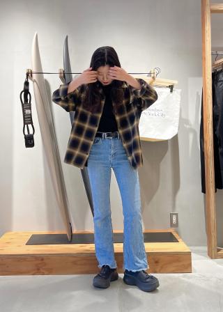 程良いふくらみと適度な落ち感が特徴的なコットンレーヨンの先染めオンブレチェックに軽い起毛加工を施したフランネルなので上品さの中に無骨さを感じる素材になっています。