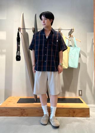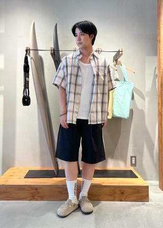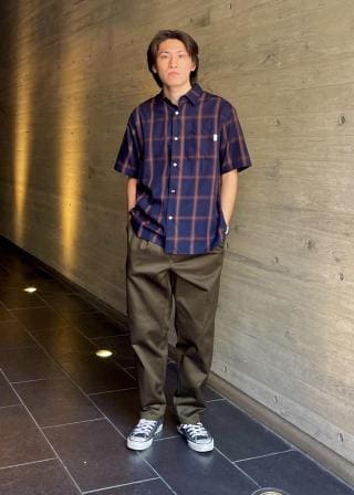 チェック柄を活かしたミニマムなデザインが汎用性高く、サイドにタックも入っているので動きのあるシルエットが再現可能