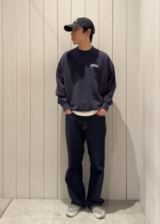 ヴィンテージライクな加工を施したクルーネックスウェットです。