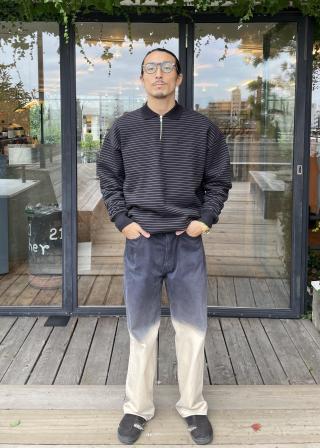 サタデーズNYCオリジナルの配色で構成されたボーダーのハーフジップポロスウェットです。