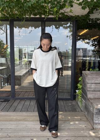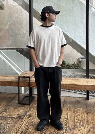 リブの切り替えと配色が特徴的なリンガーデザインと程よくリラックスしたシルエットが1枚着はもちろんレイヤードに映えます。