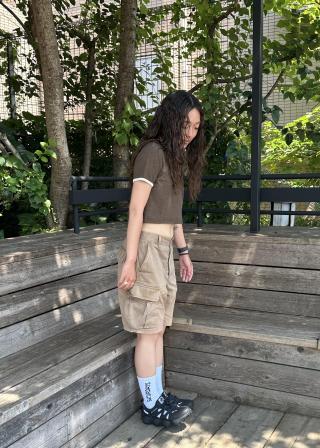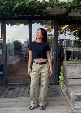 リブの切り替えと配色が特徴的なリンガーデザインのプチTシャツ。