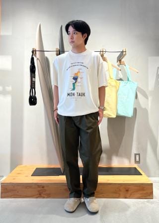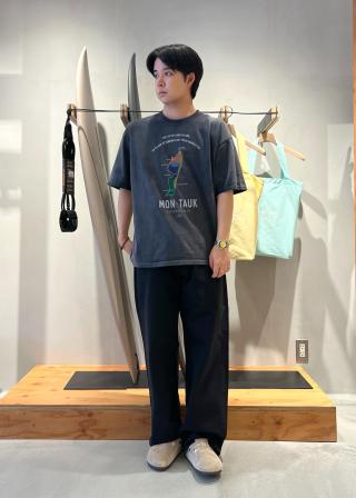 モントークのサーフスポットにフォーカスしたグラフィックがキャッチーなデザインで、程よくゆとりのあるサイジングは大人のアイテムに仕上がっています。