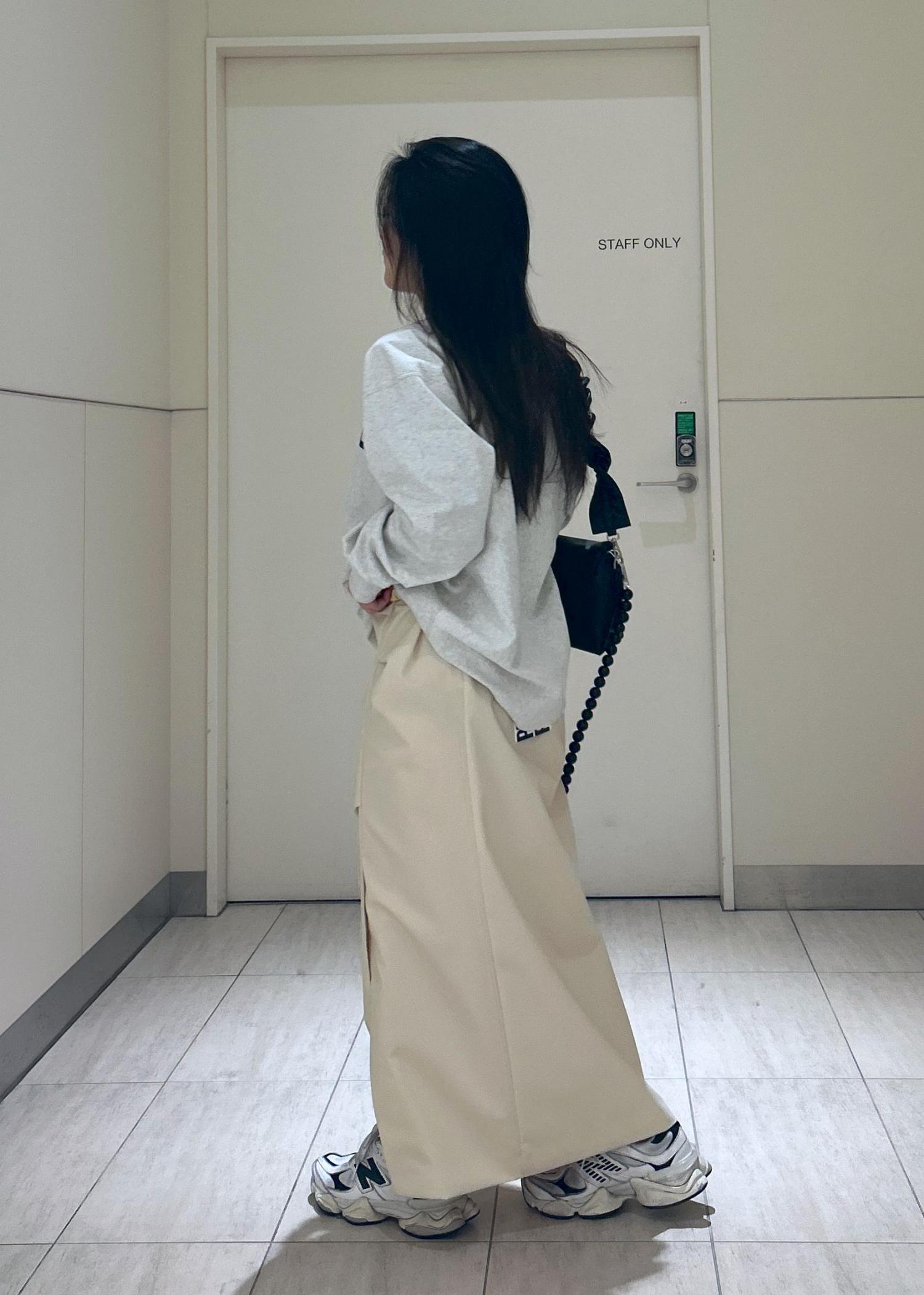 このスカートは少しタイトになっていて細みのスカートなのでゆったりしたものと合わせても大きく見えずとても可愛く着用できました^_^