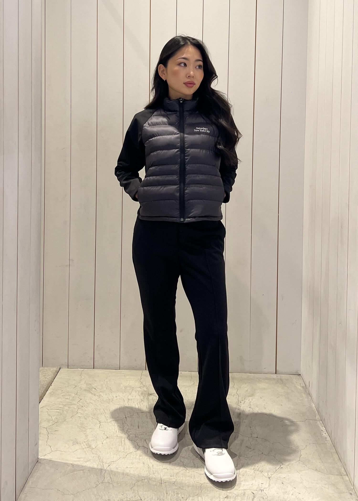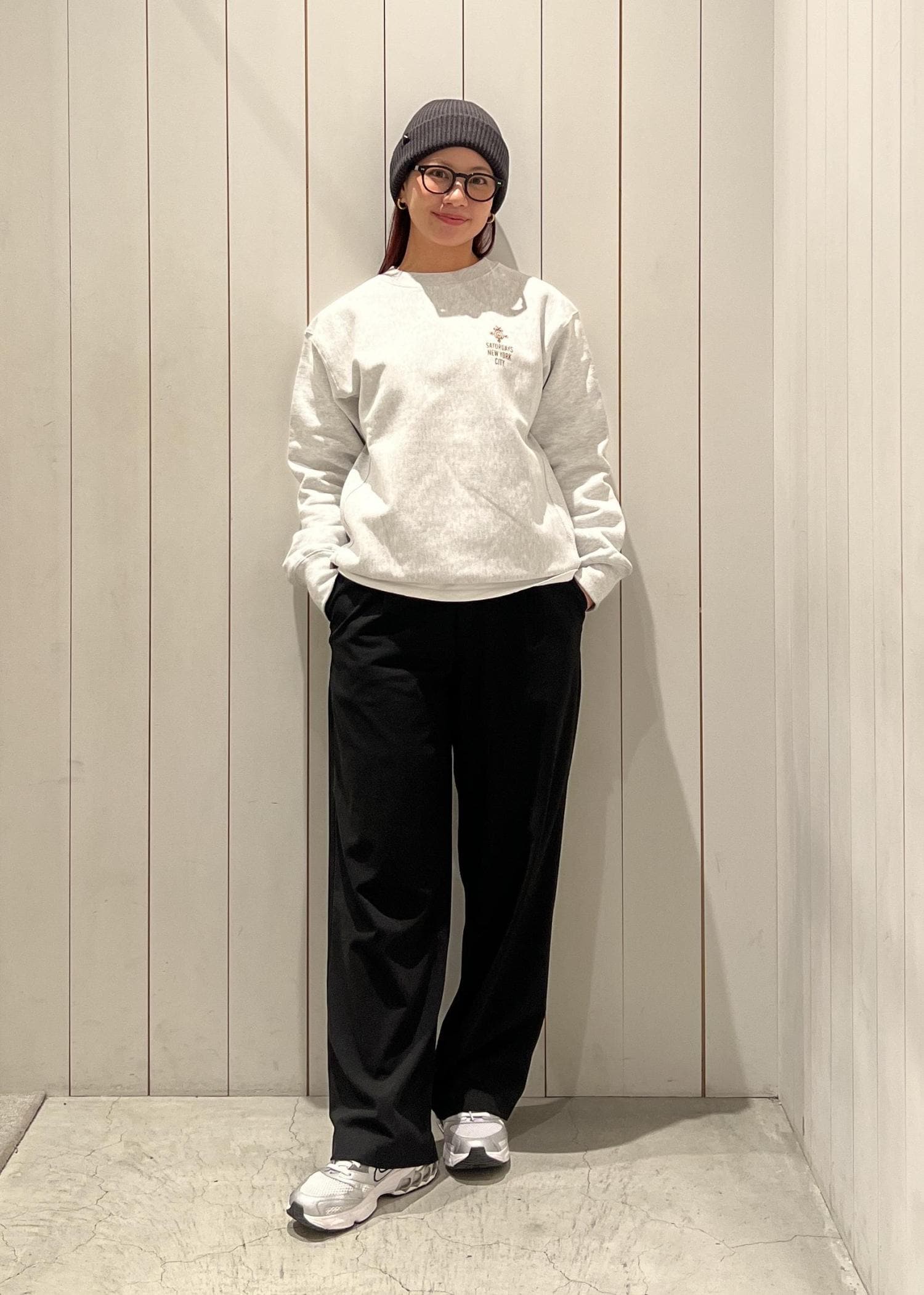 スラックスに合わせていますが、カーゴパンツやスウェットパンツなど合わせれるアイテムが多いです!