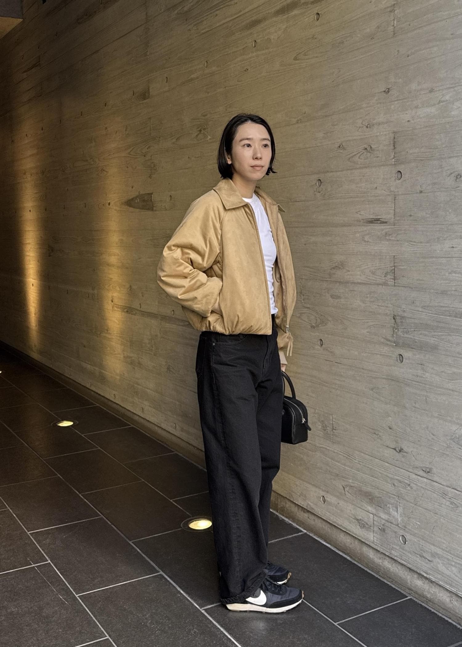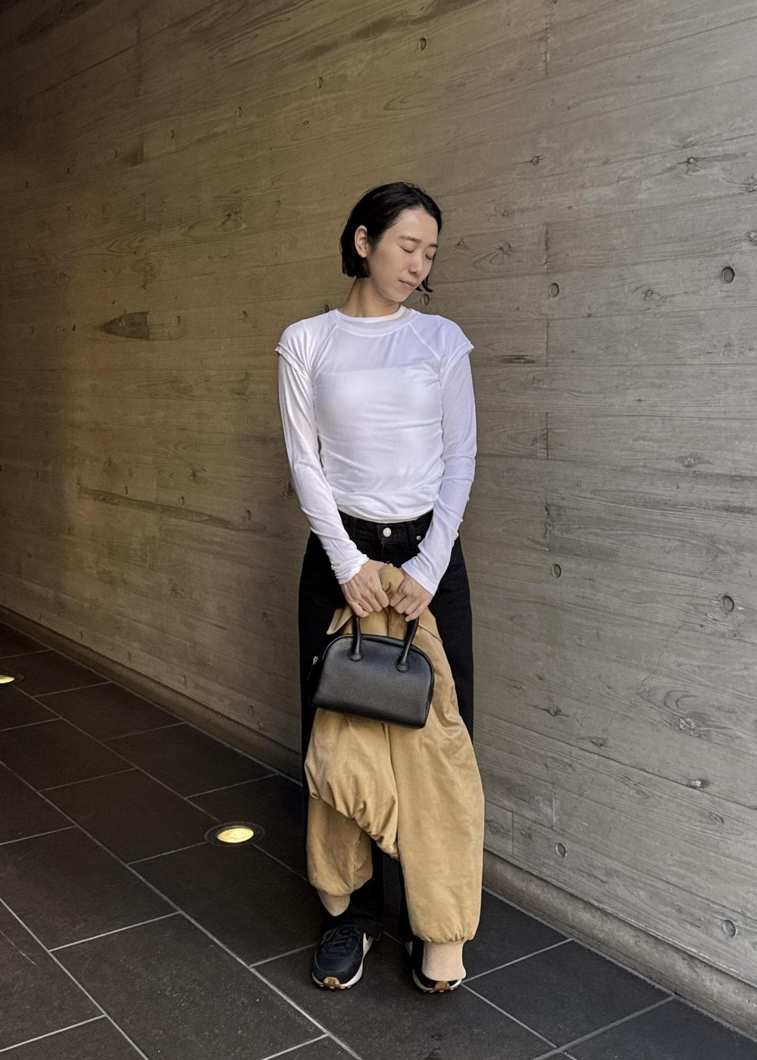 モノトーンな雰囲気も良いですが、小物でカラーを使いカジュアルな雰囲気に!