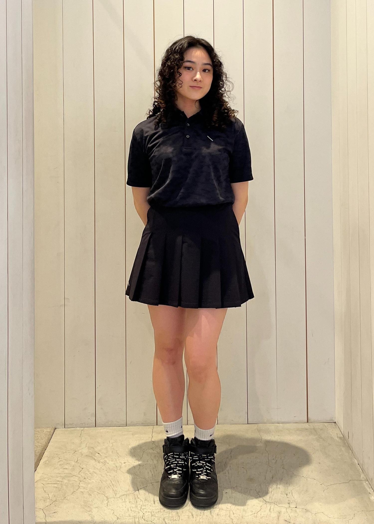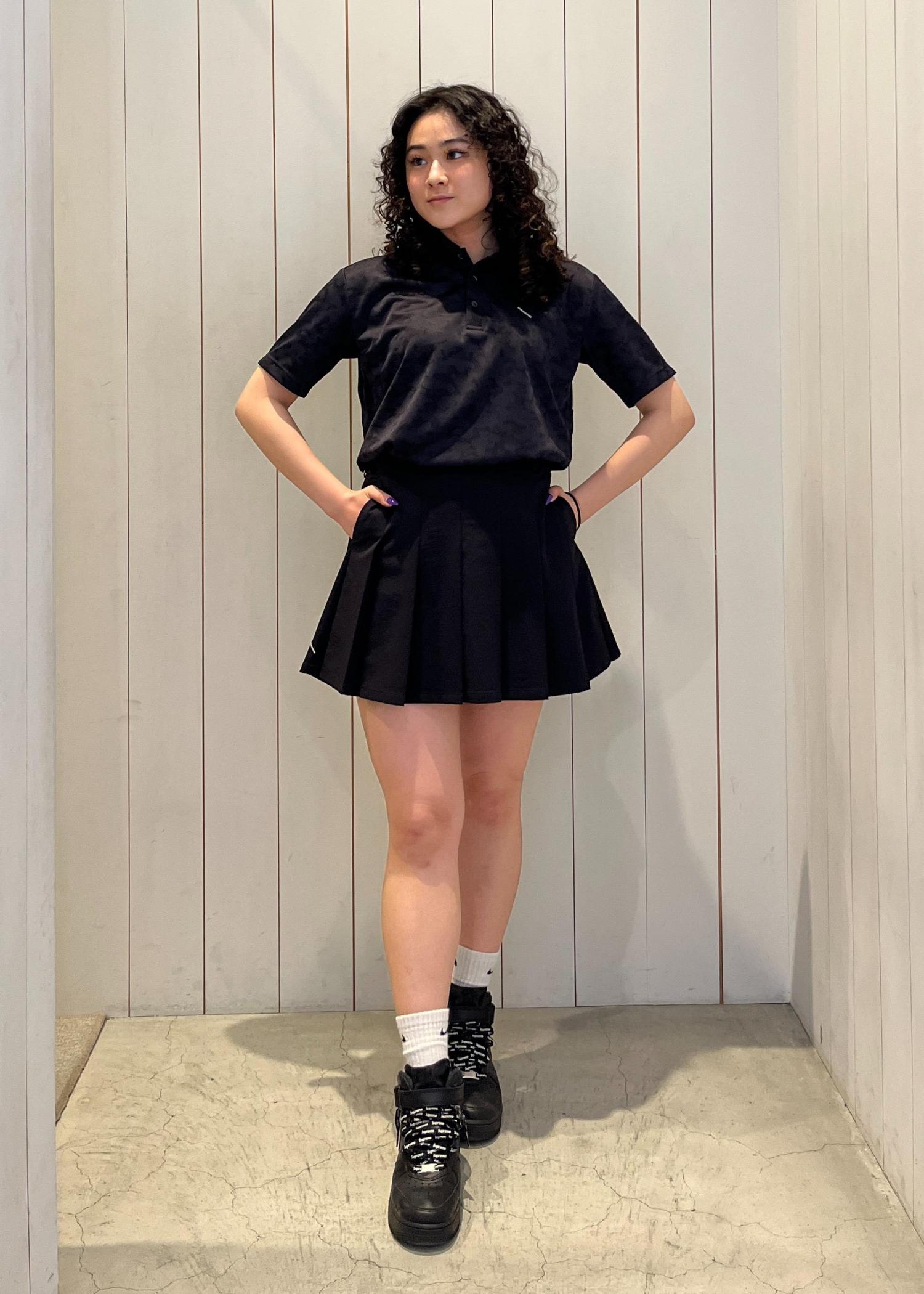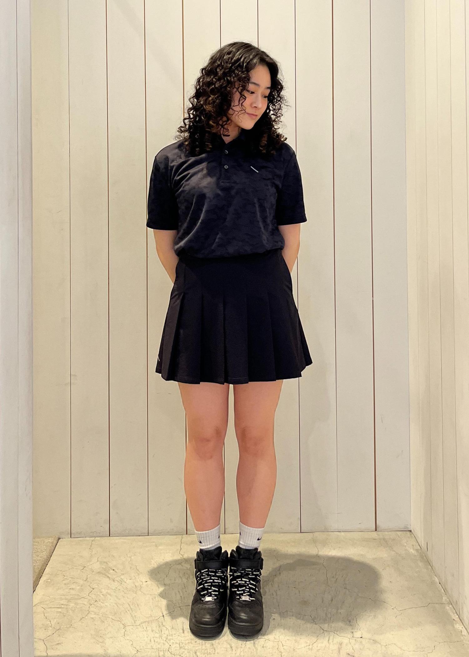 ジャガードのポロシャツとレディースのゴルフスカートで