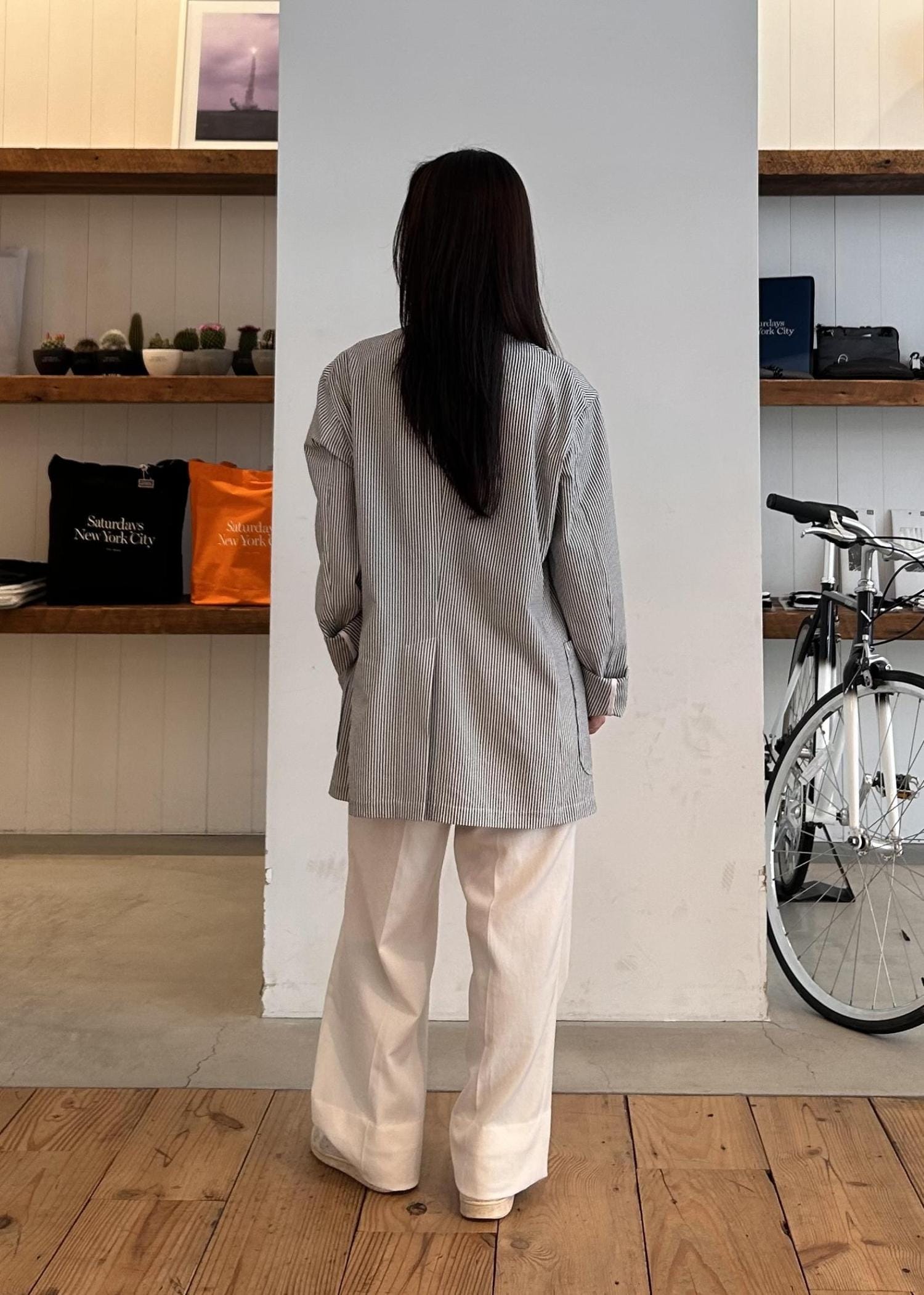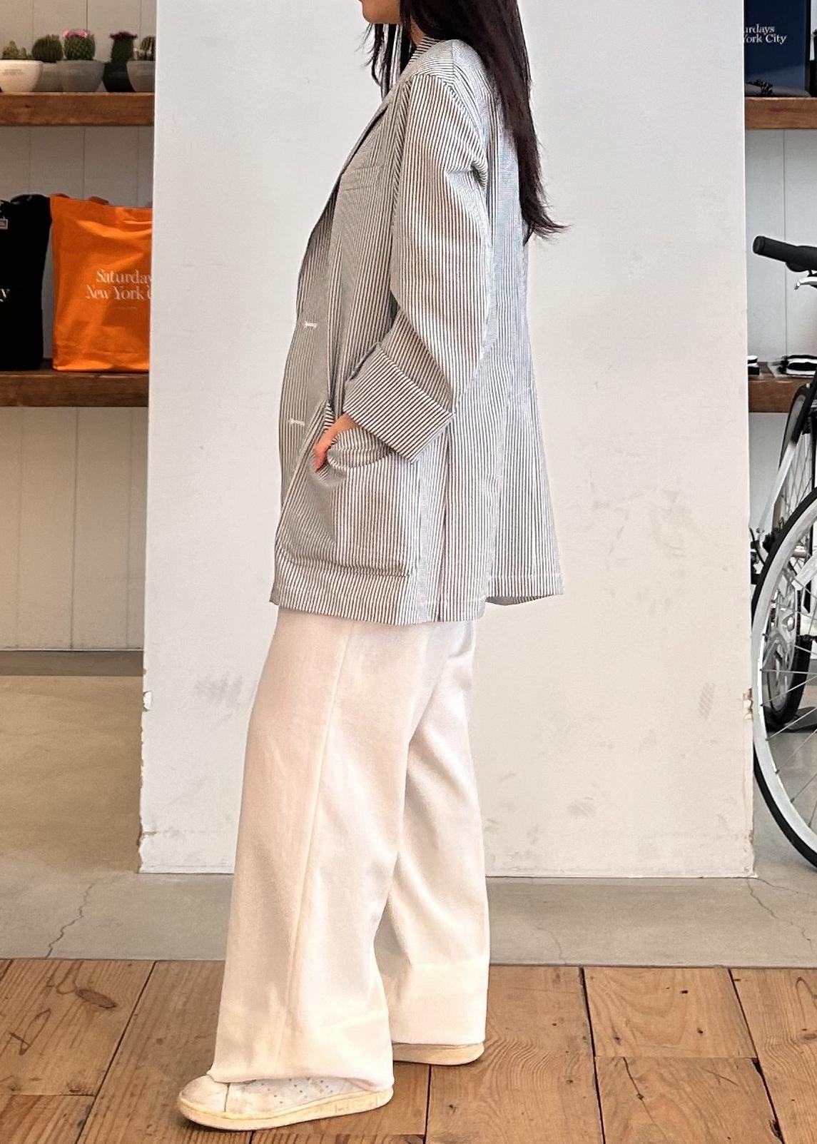 このジャケットはゴルフウェアなのですが、シアサッカー素材でとても涼しく着用できるので、夏場でも普段使いで羽織れます!