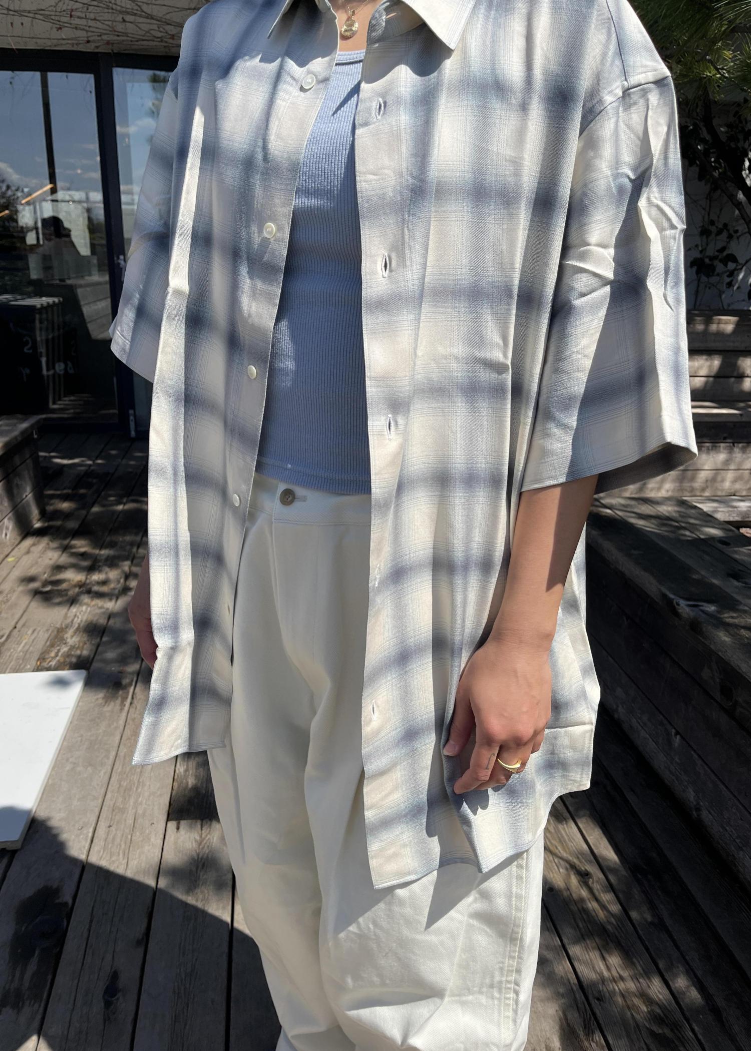 Saturdays Surfのイメージを蘇らせたアウトフィット。自身の名前をモチーフにされた"Miku Sunglass"は付け心地が良く、インパクトがあるデザイン。どんなスタイルにもフィットする万能グラス。レディースタンクトップはオールコットンで締め付けすぎないフィット感が心地よいです。シャツとパンツはXLでオーバーサイズに。西海岸の雰囲気はありながらもシューズ次第でシティにも馴染むようなスタイリングに。