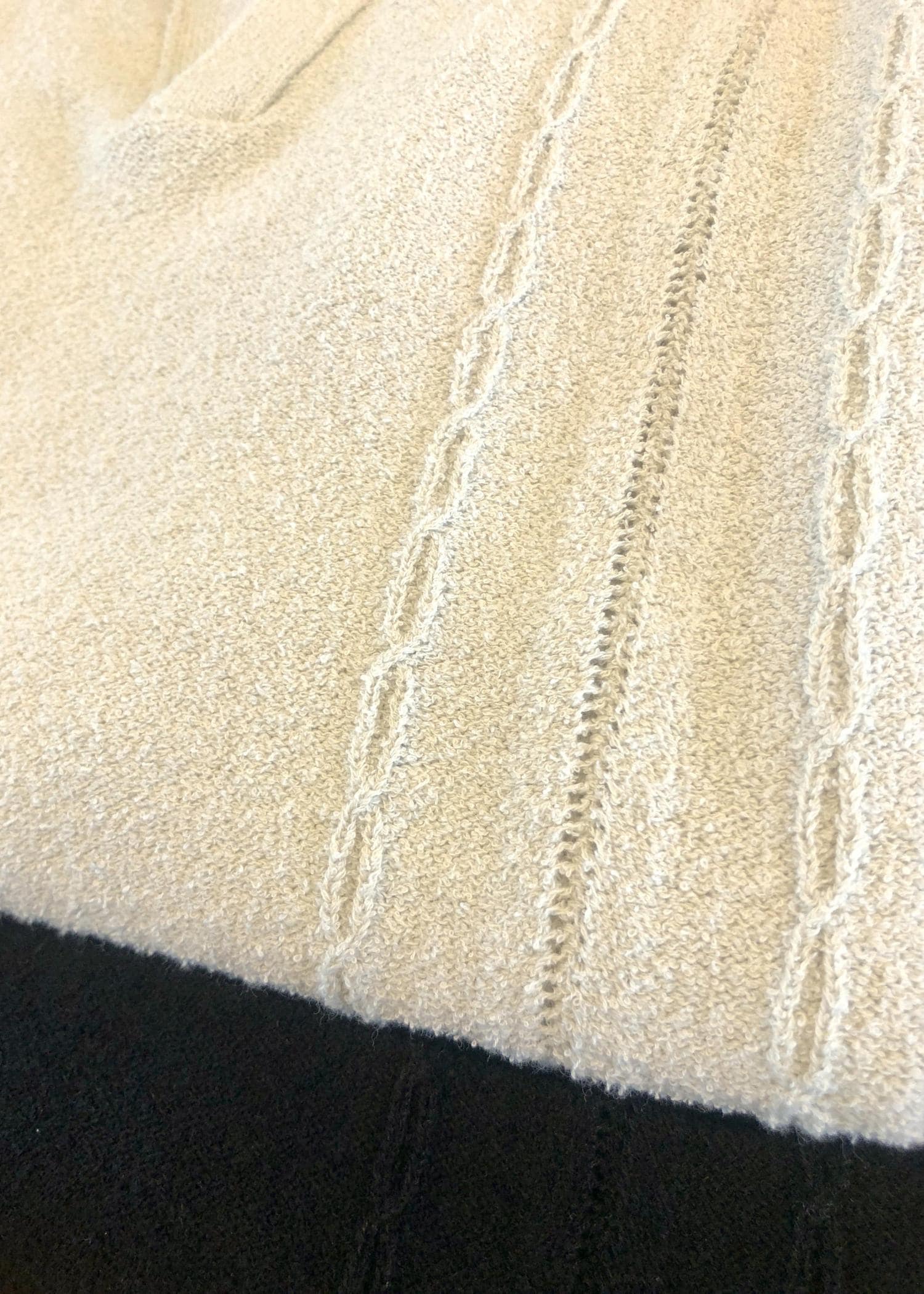 タオル地とパイル地の中間のような素材感にケーブル編みストライプが特徴的。
