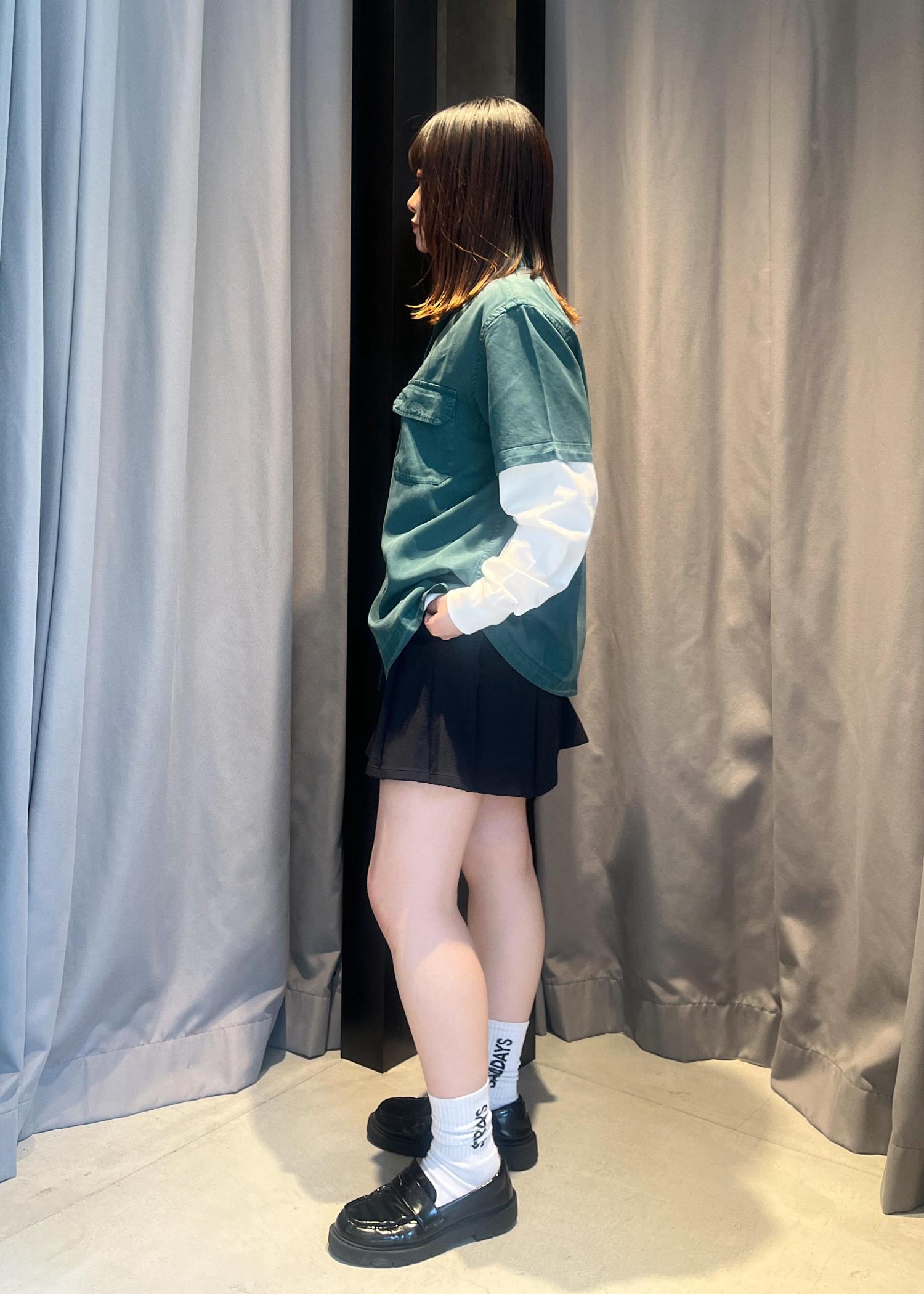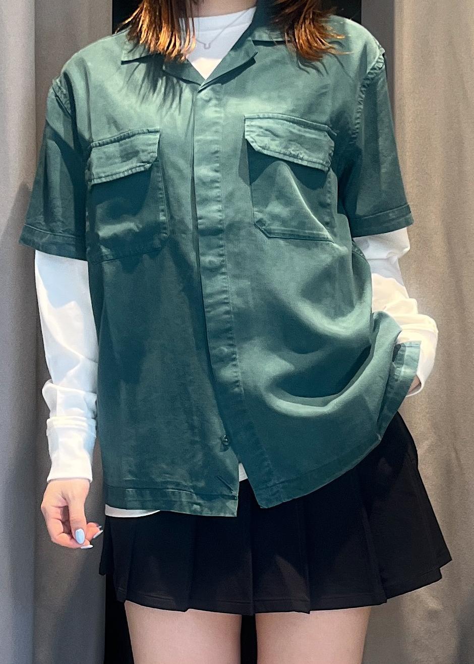 今回はグリーンの半袖シャツを使ったレイヤードスタイルです!