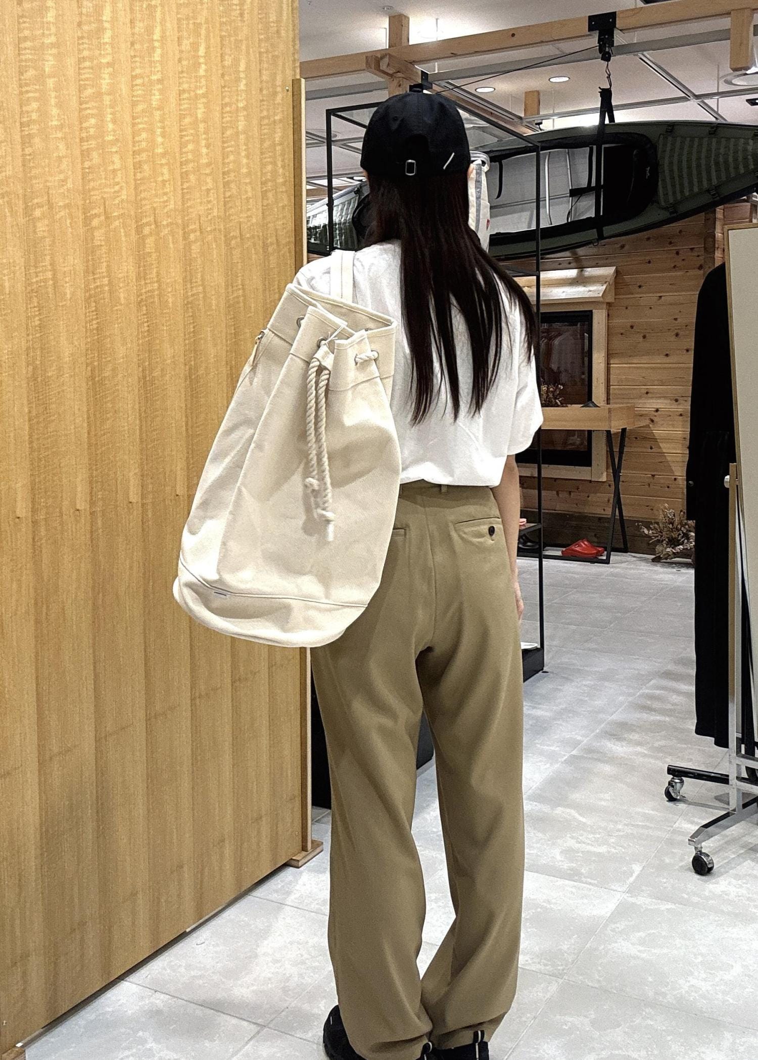 1タック(アウトタック)で入ったゆとりのある腰回りから綺麗なテーパードの大人のリラックスシルエットです。
