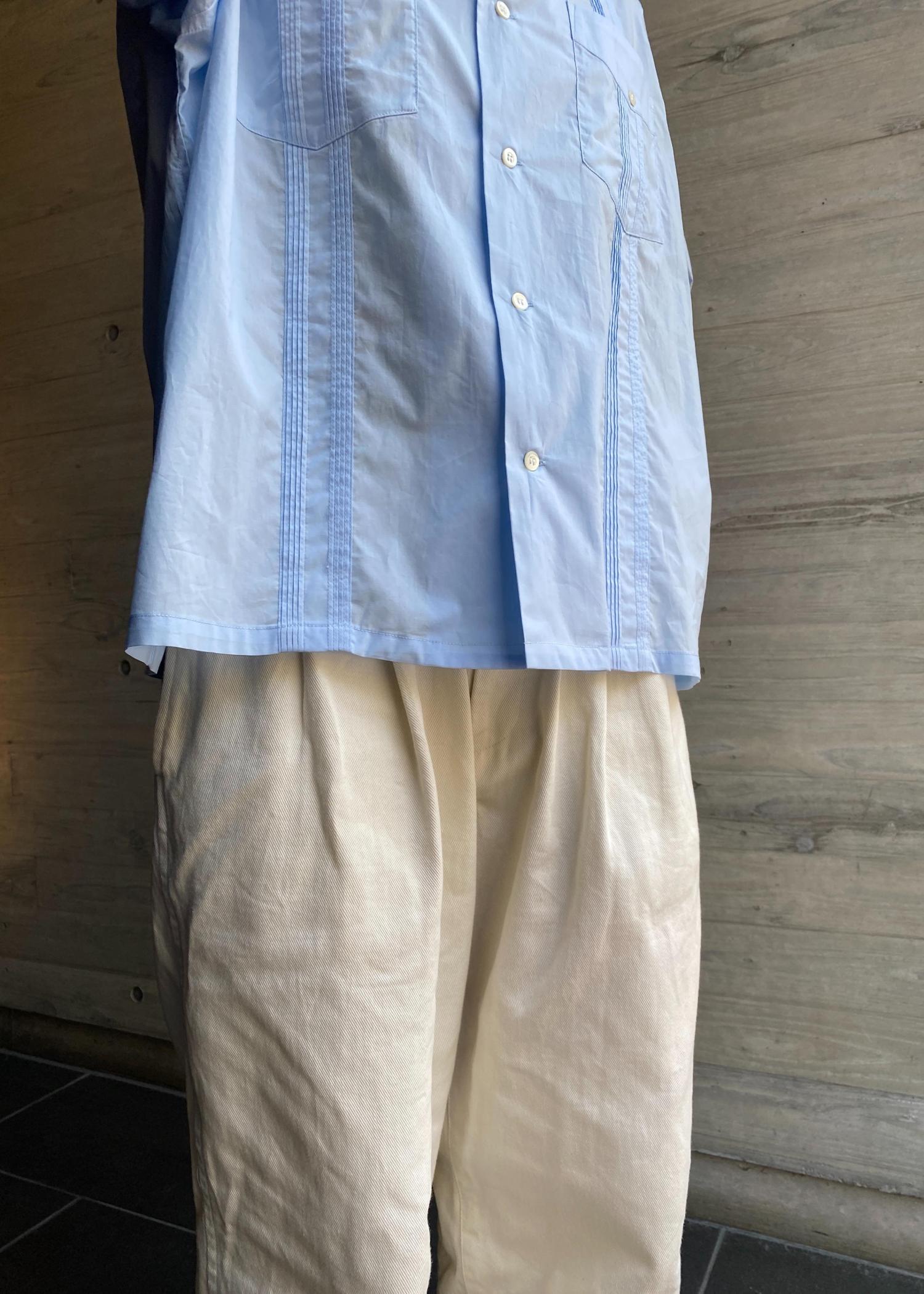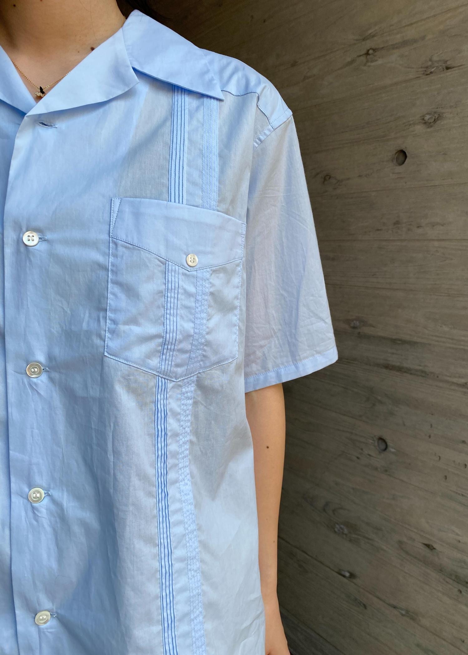 クラシックなキューバシャツから着想を得た、タックデザインが特徴的なオープンカラーシャツです。