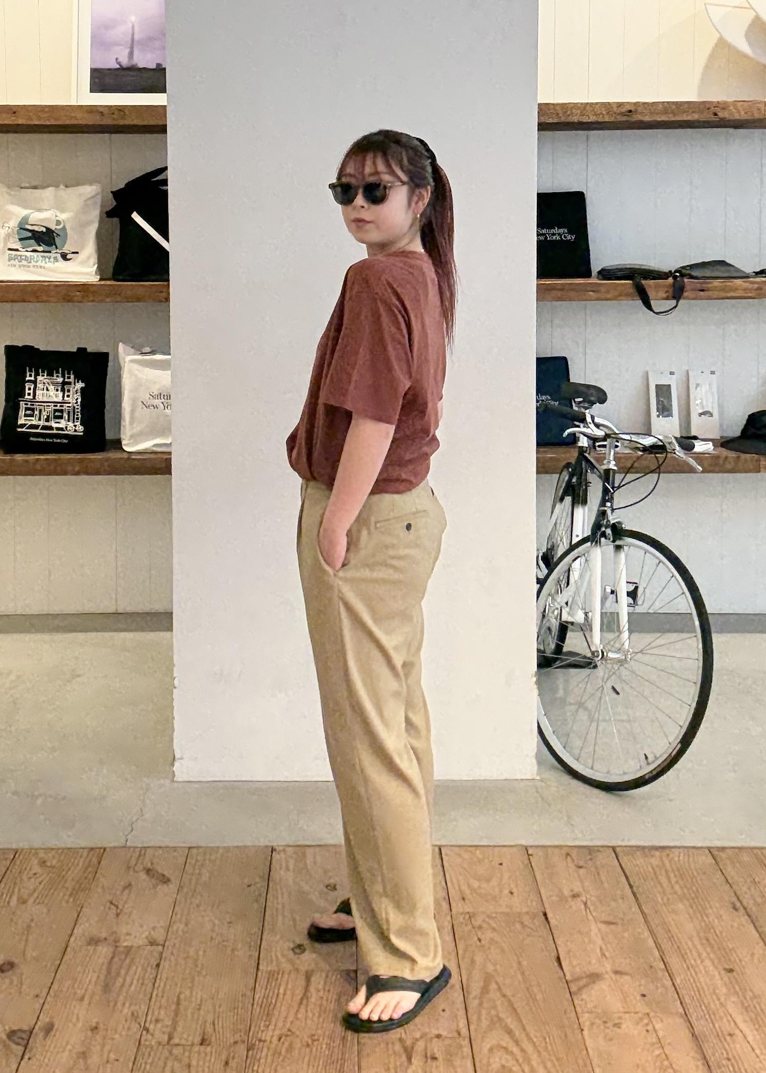 女性はXSできて、パンツでゆとりをもたせてもバランスよく着こなしていただけると思います。