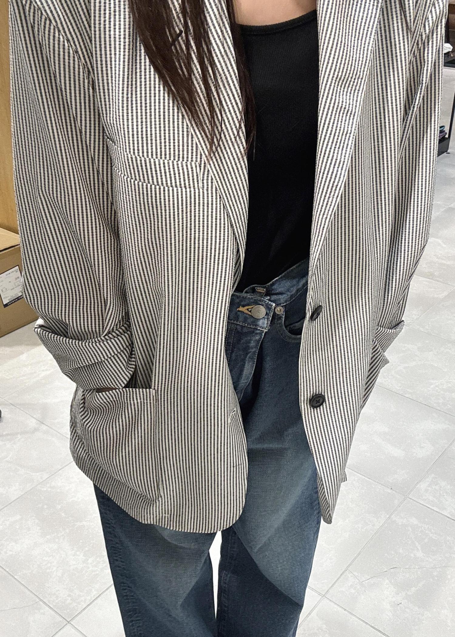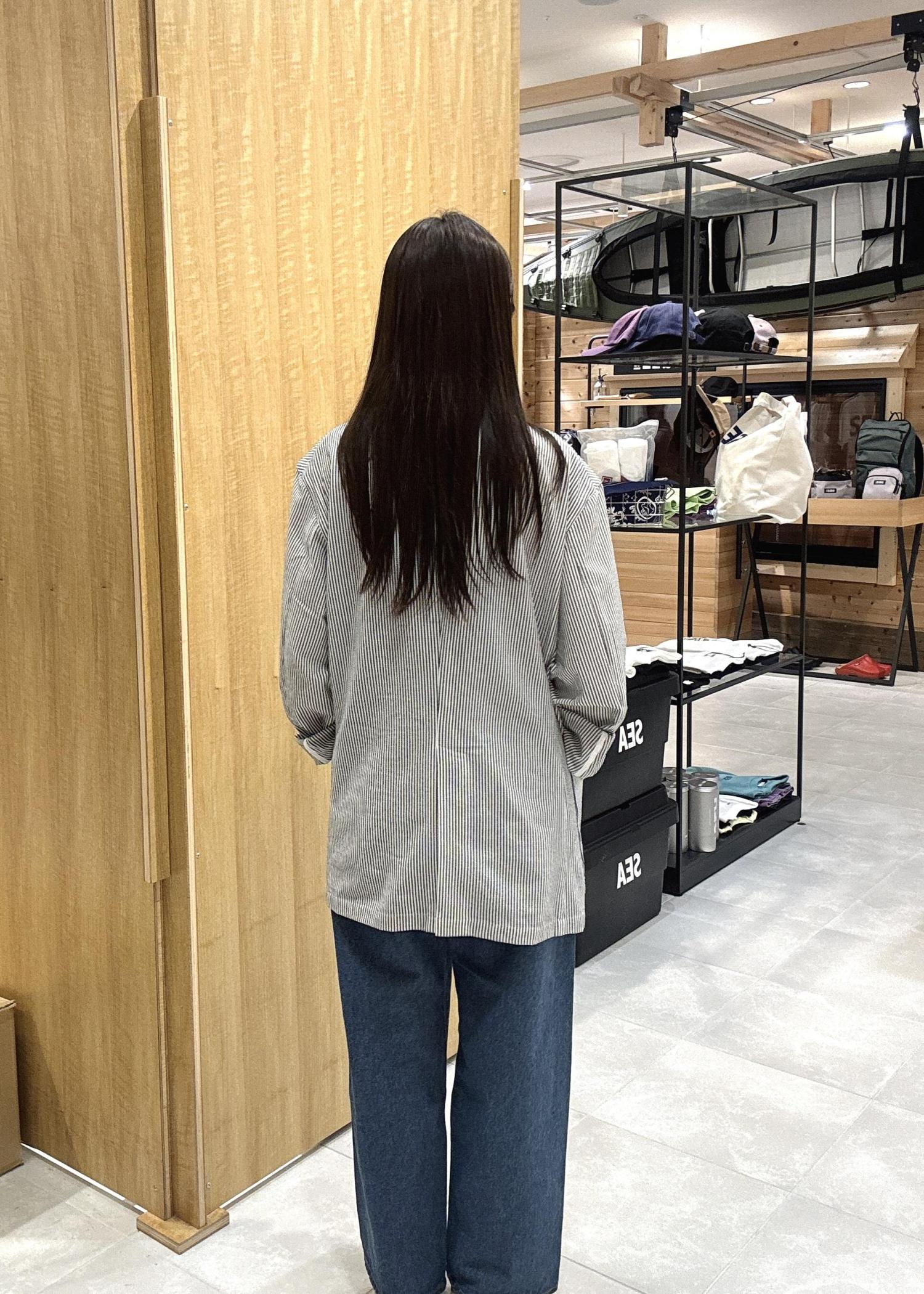 ジャケットは、凹凸がありサラッとした肌触りでストレッチ性を備えたシアサッカーの布帛素材を使用。