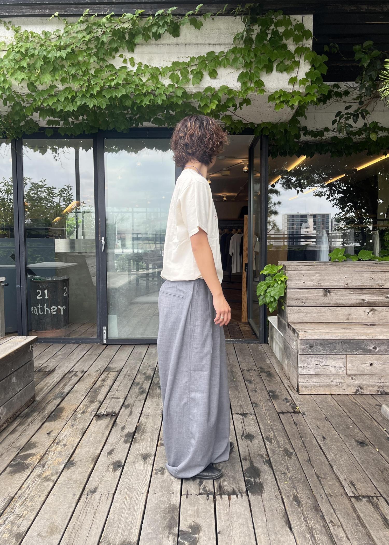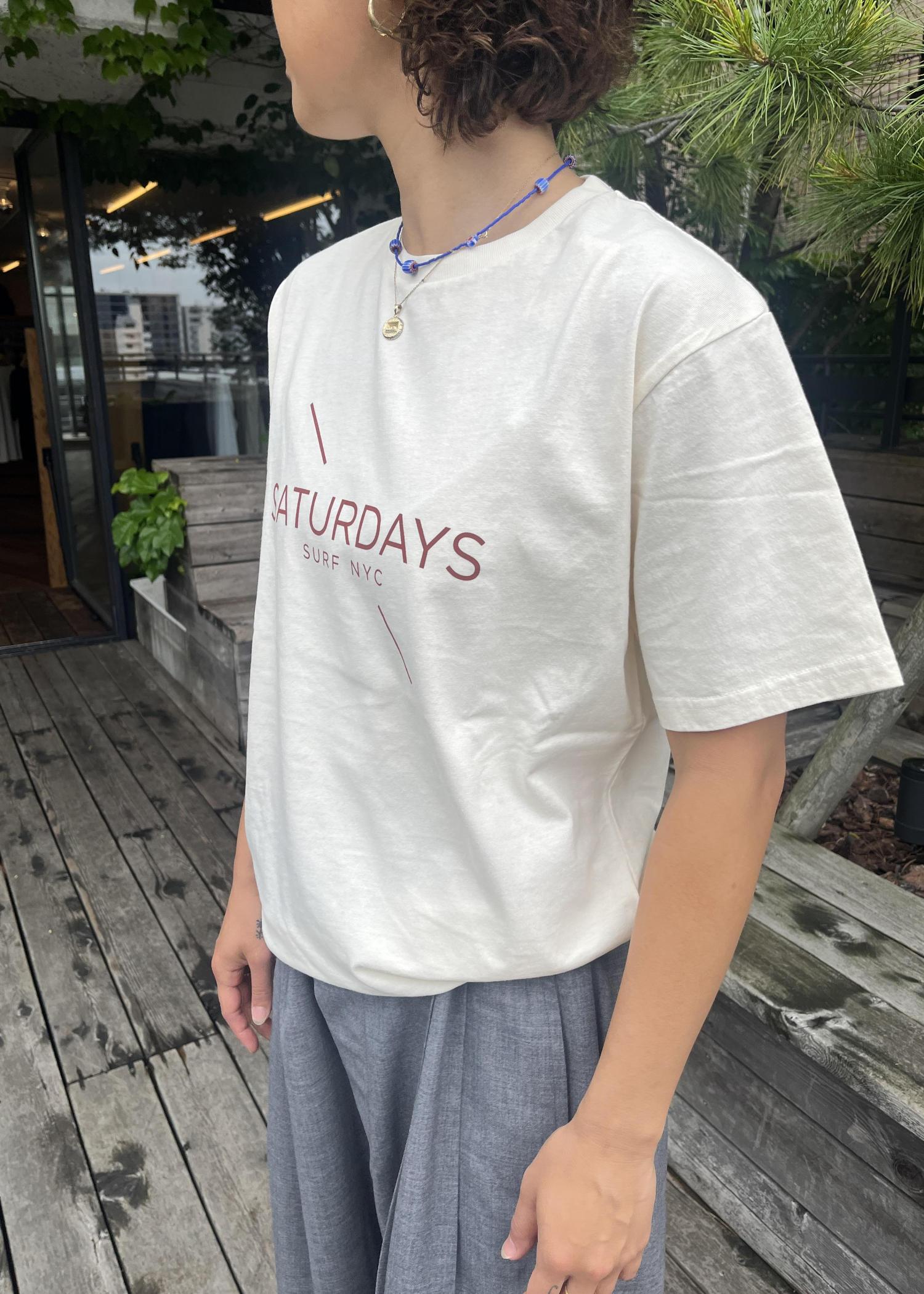 XLのワイドパンツにベーシックTシャツをコーディネート。Saturdays Surfの匂いが残ったTシャツは懐かしくもあり変わらないスタイルが特徴。洗練され過ぎずラフなスタイルですがシティの雰囲気が残るアウトフィット。