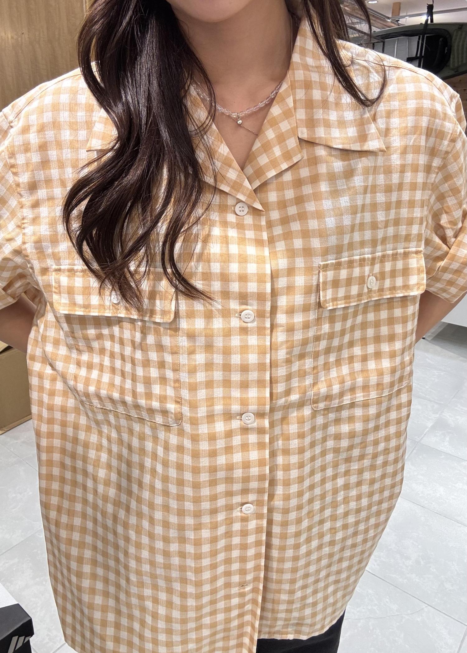 今日の主役はギンガムチェックのオープンカラーシャツ☺︎