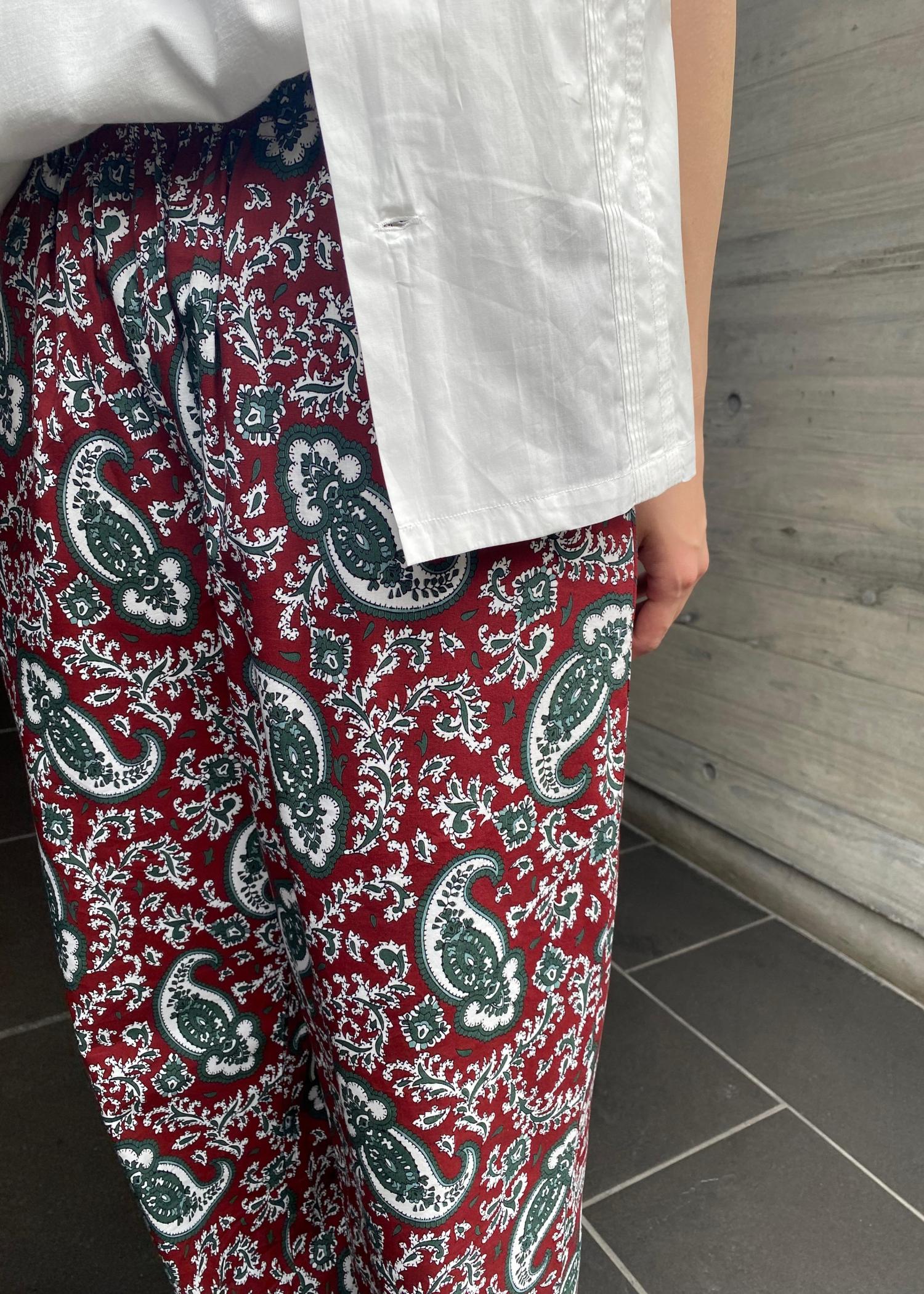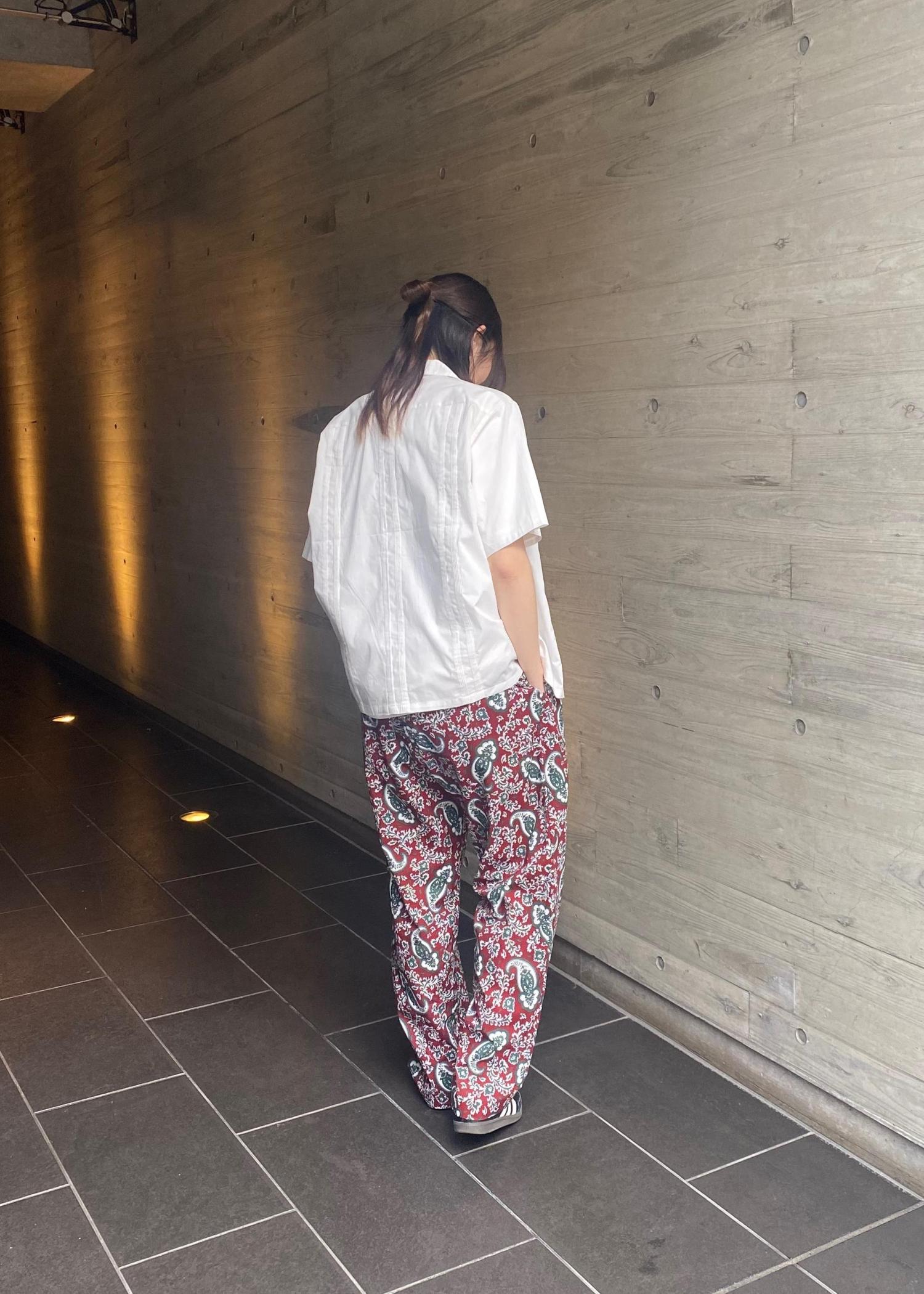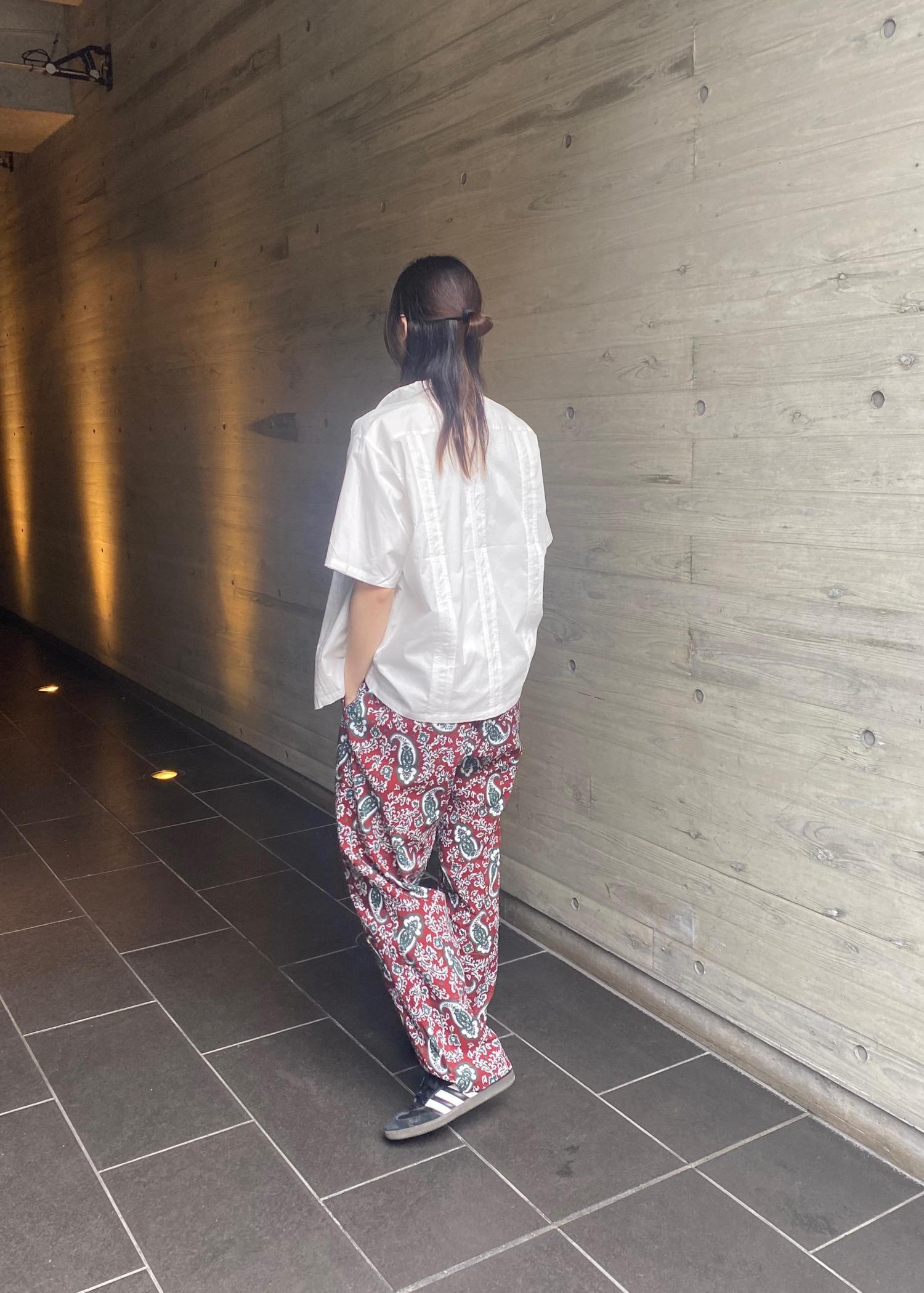 リラックスしたシルエットと紐付きデザイン、目の惹くペイズリー柄がスタイリングの幅を広げてくれるアイテムです。