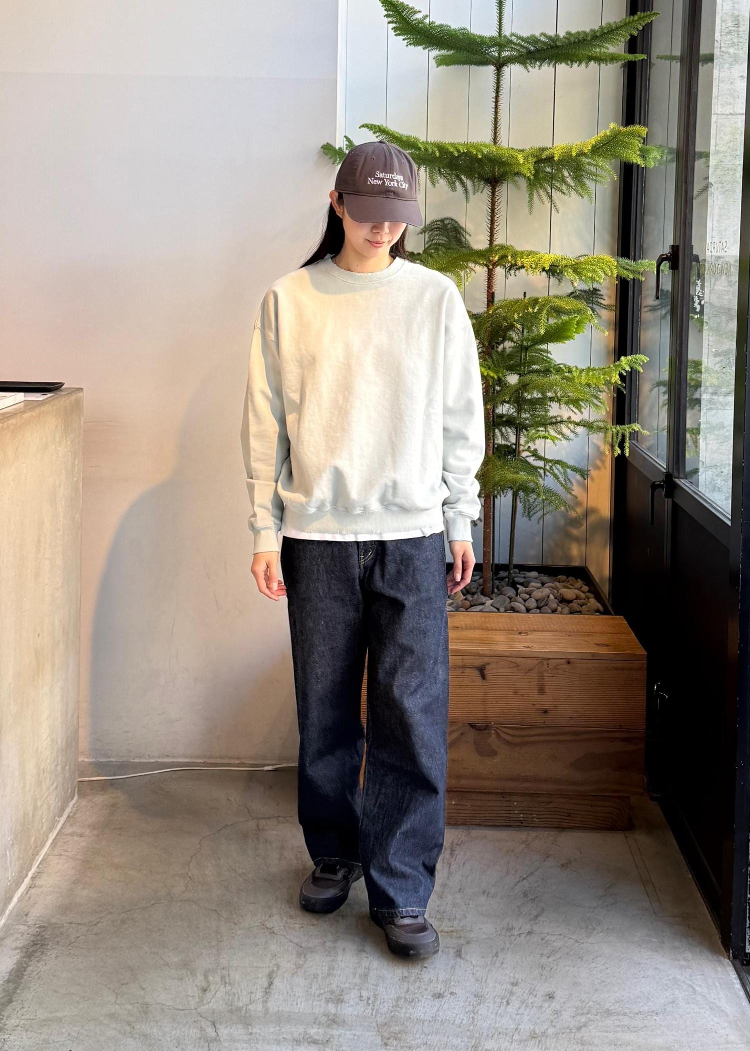 今回はスラックスを合わせてオールブラックに少し寂しいので差し色にグリーンのキャップを!