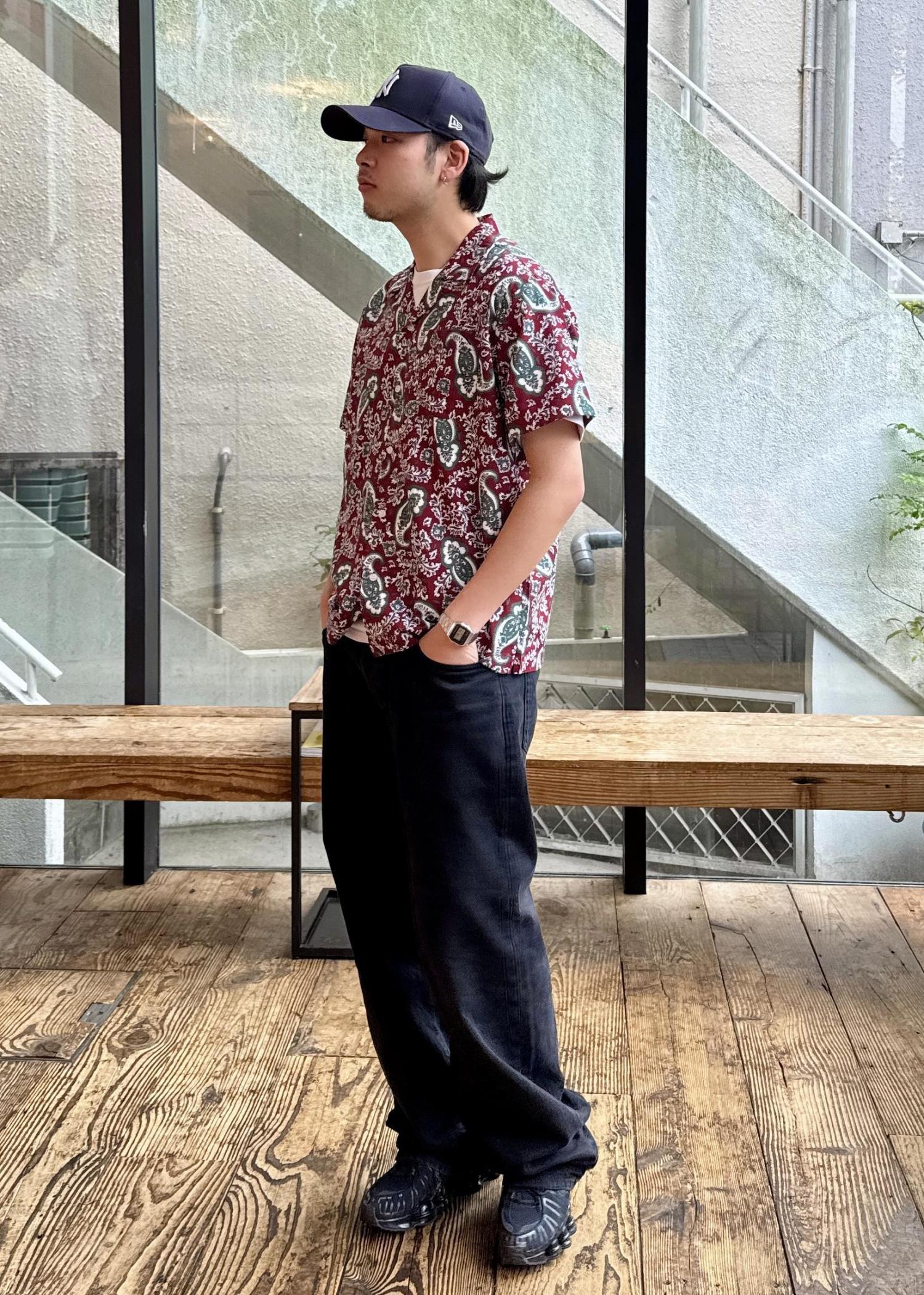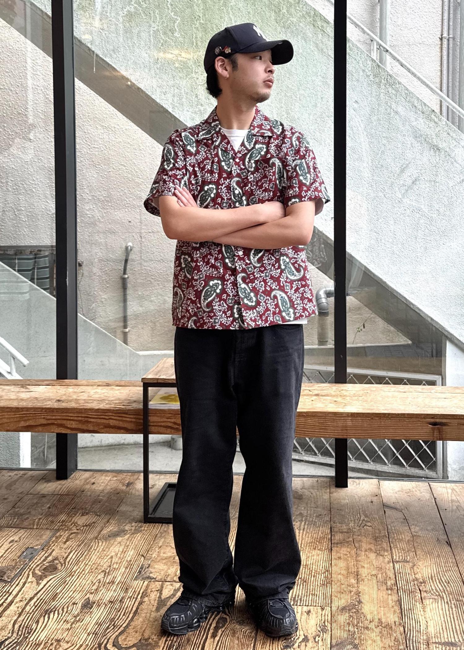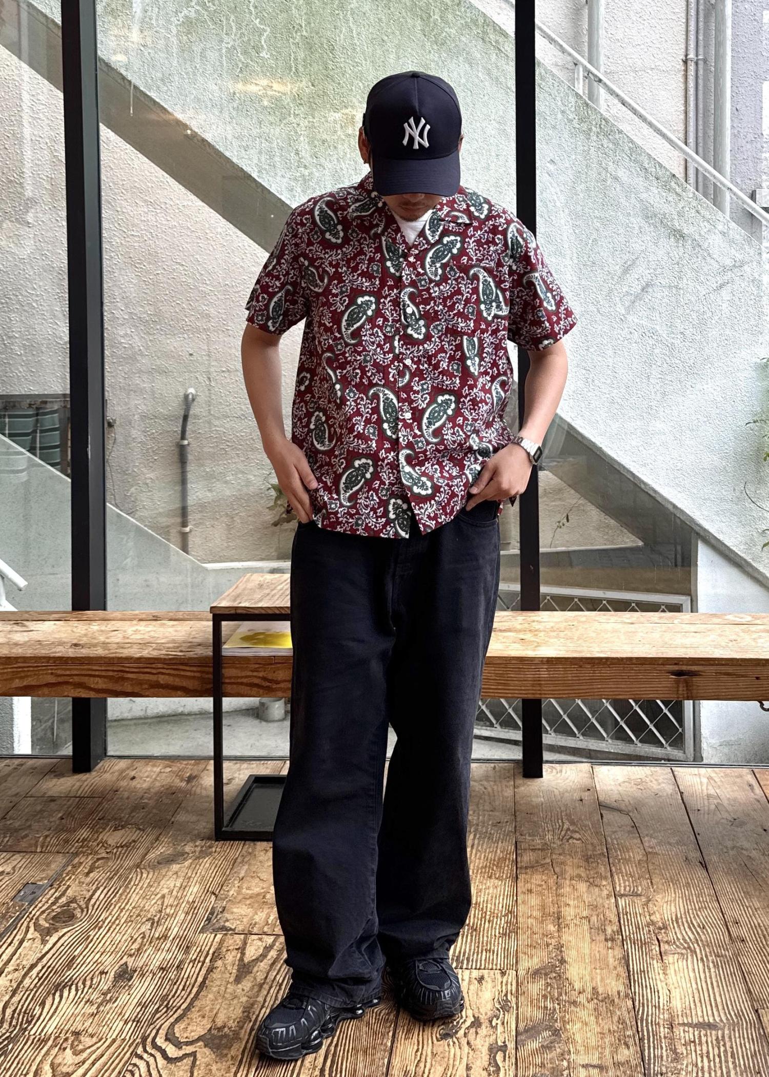 ペイズリー柄の開襟シャツはペイズリー柄が印象的な開襟シャツは、レトロ感と個性を同時に演出し、ボルドーが基調なので派手すぎず、落ち着いた大人っぽさを与えてくれます!
