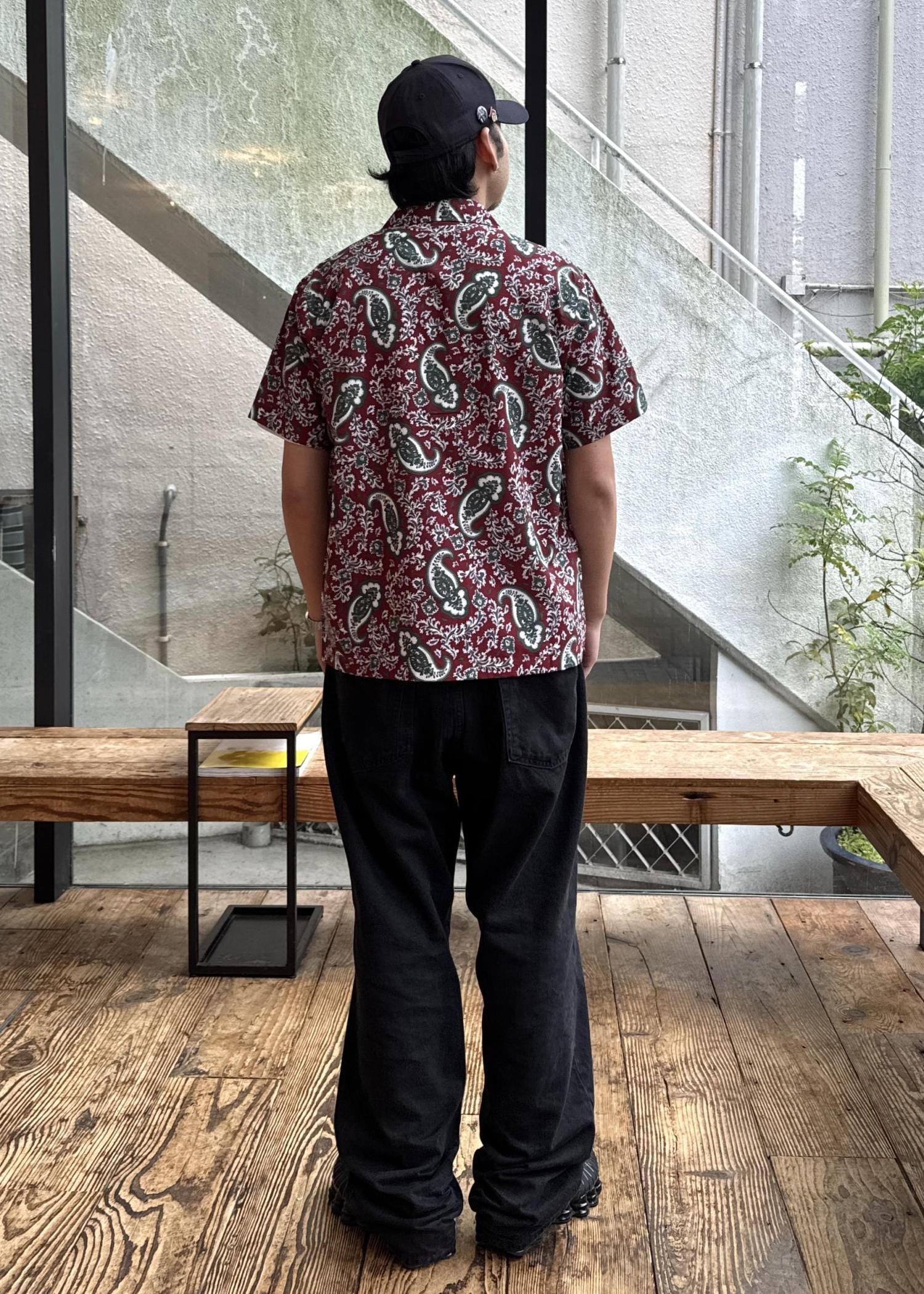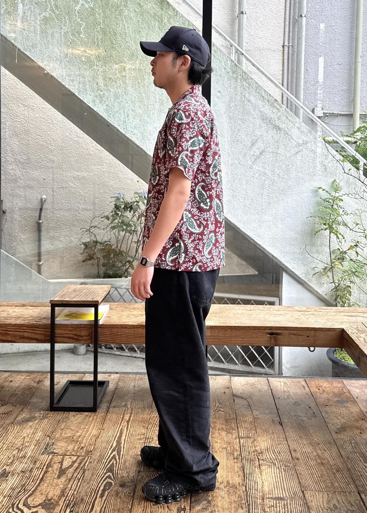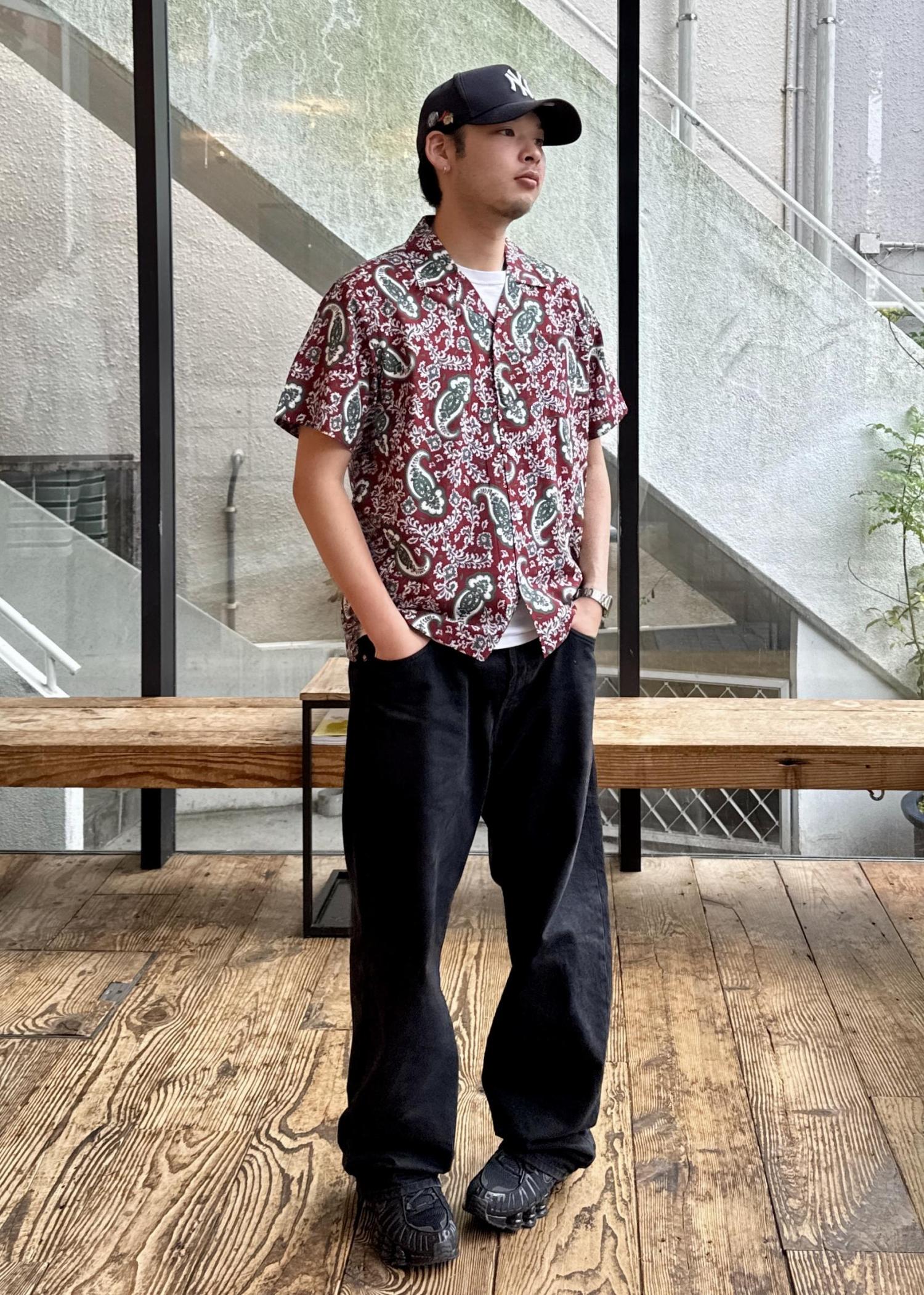ペイズリー柄の開襟シャツはペイズリー柄が印象的な開襟シャツは、レトロ感と個性を同時に演出し、ボルドーが基調なので派手すぎず、落ち着いた大人っぽさを与えてくれます!