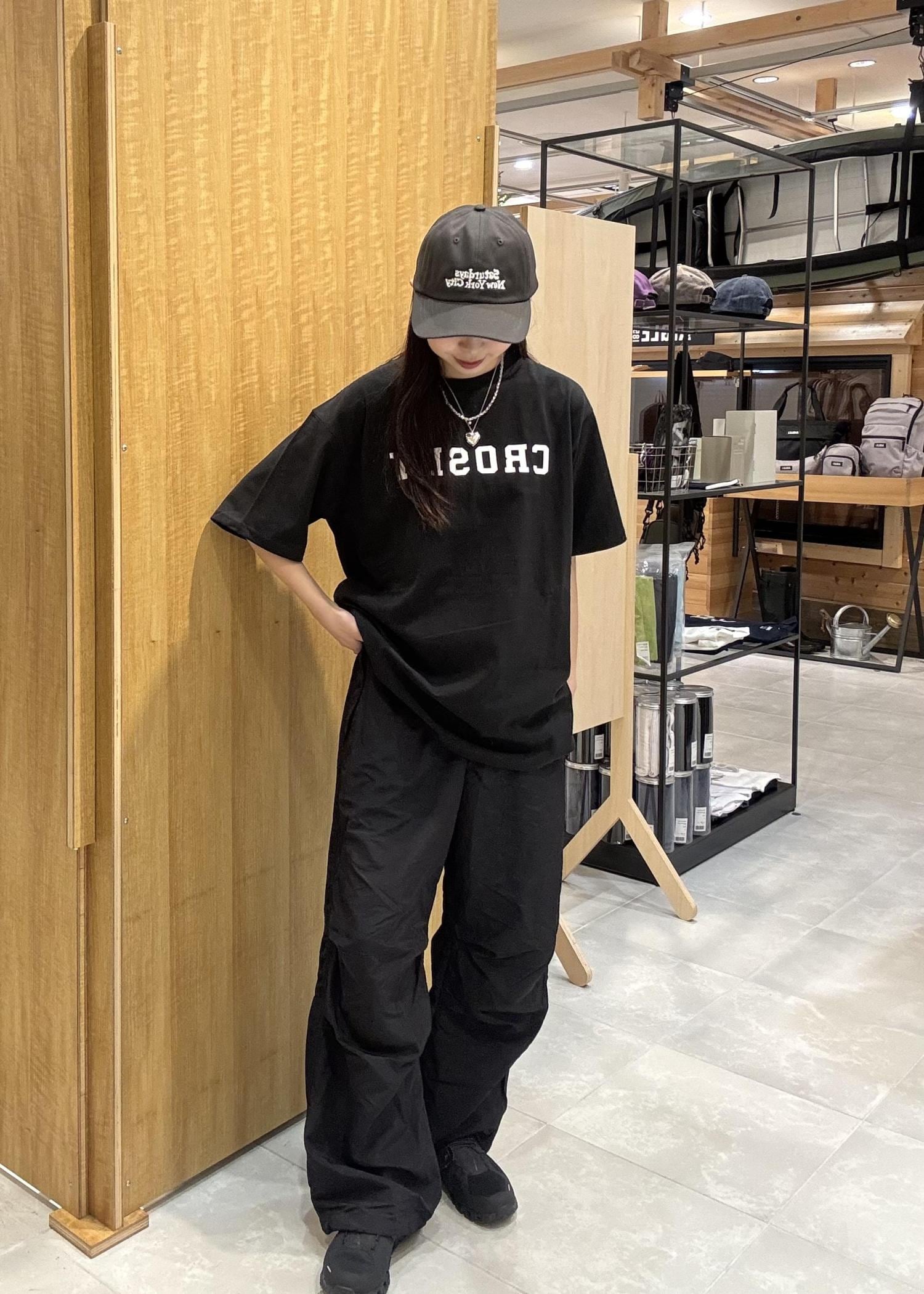 今回はTシャツをワンサイズ大きめで着用し、オールブラックですがラフでリラックス感のあるスタイリングにしてみました!