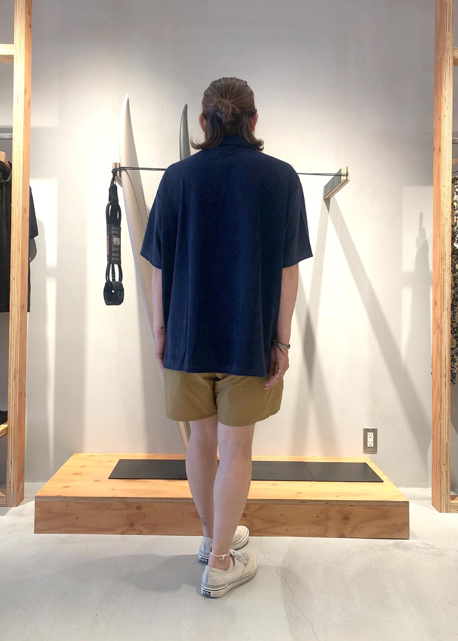 トップスに、ボクシーなシルエットと、クラシックなデザインが特徴的なポロシャツから着想を得たパイル素材のポロシャツです。