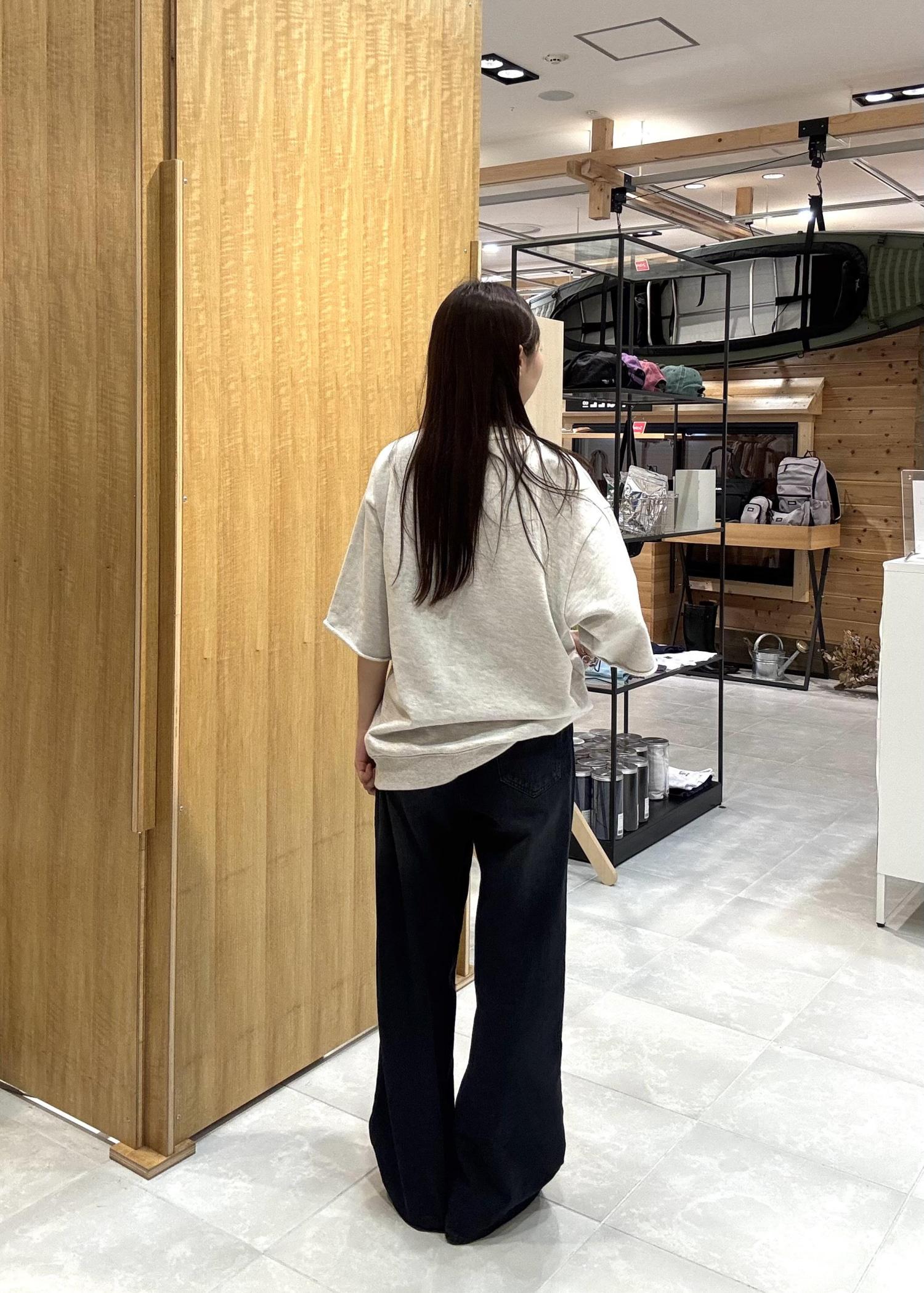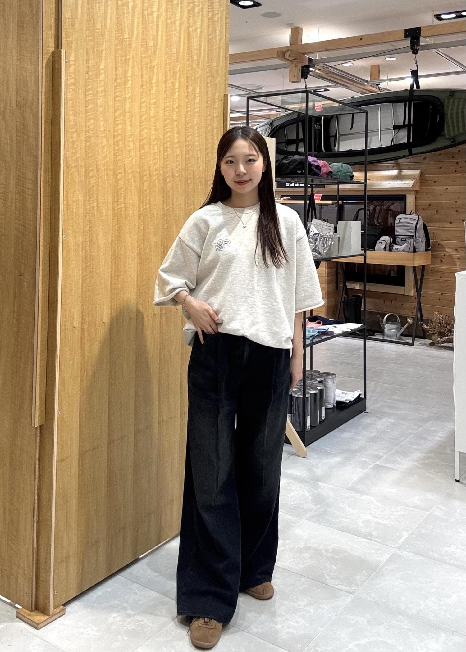今回着用しているスウェットは、袖部分が切りっぱなしになっていてとても可愛く、女性でもカジュアルに着ていただくことができます!