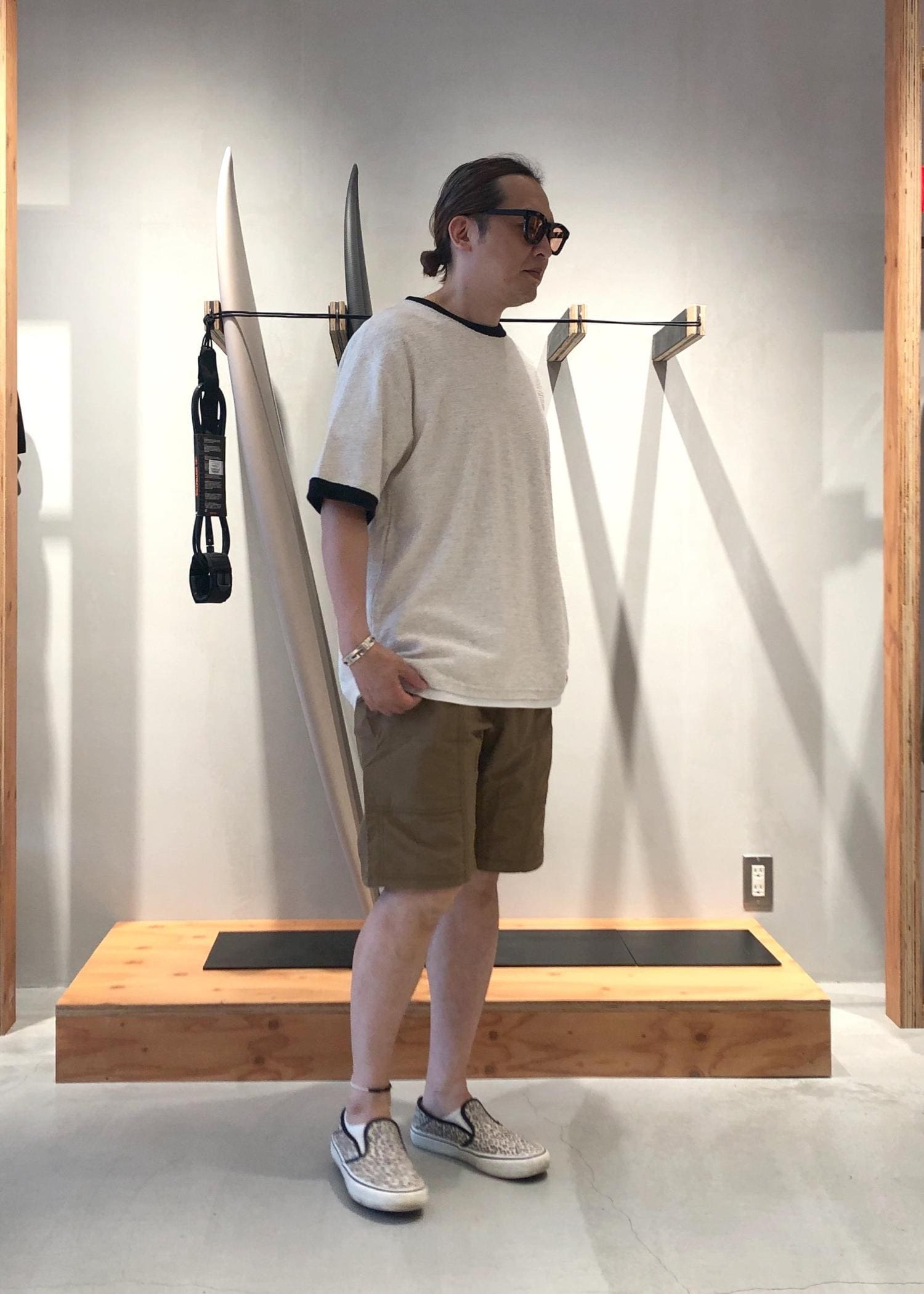 パンツは、サタデーズNYCオリジナルフィットのグラミチ別注です。 今シーズンはSATURDAYSのみでの展開モデルで、ベルト先やネームのカラーをスペシャルなモノにしたSATURDAYSだけの別注アイテムです。