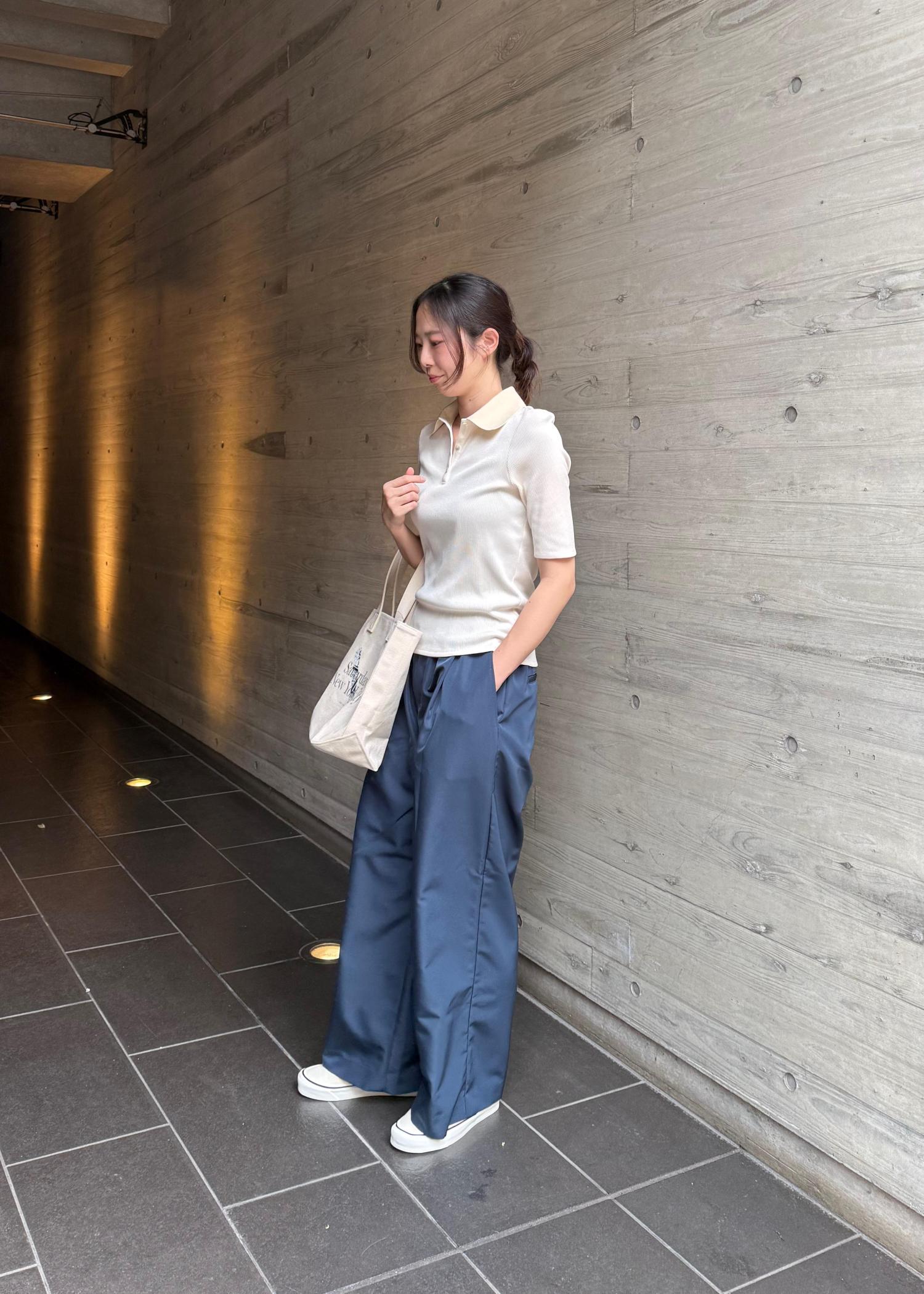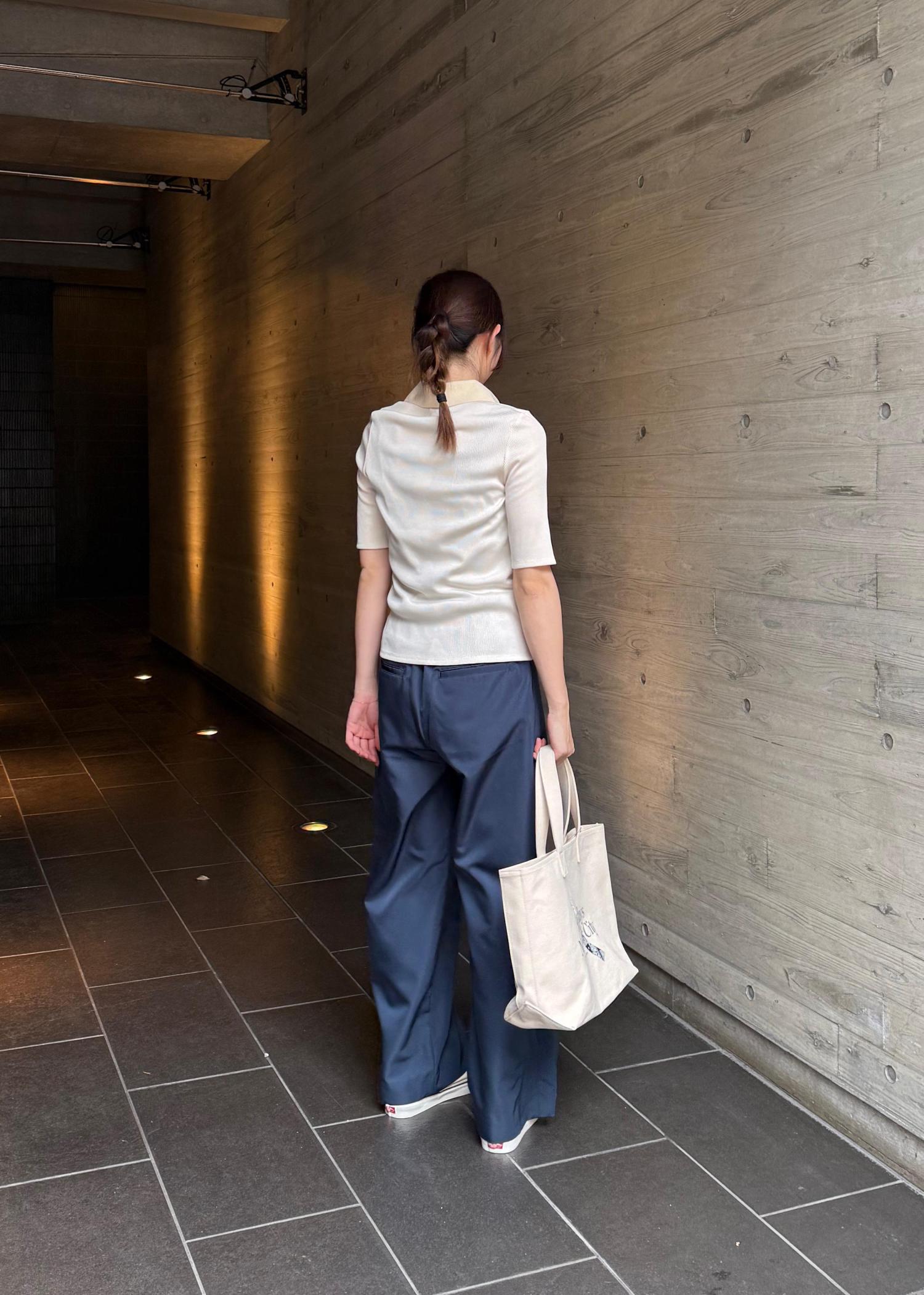 トップスは細目の前立てがカジュアルになりすぎず、多様なコーディネートが楽しめる1枚です。