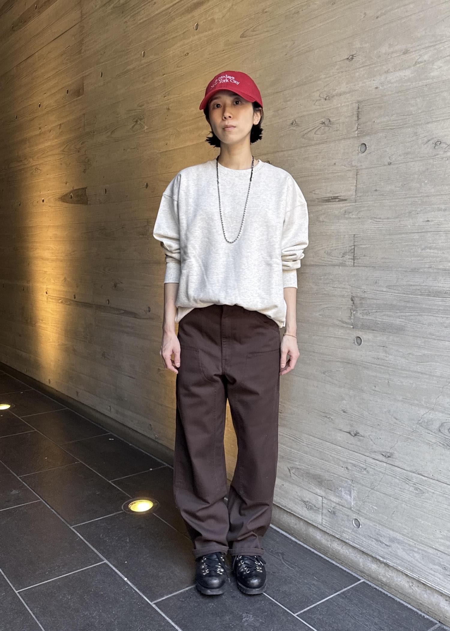 ブラウンを基調としたワントーンコーデ。