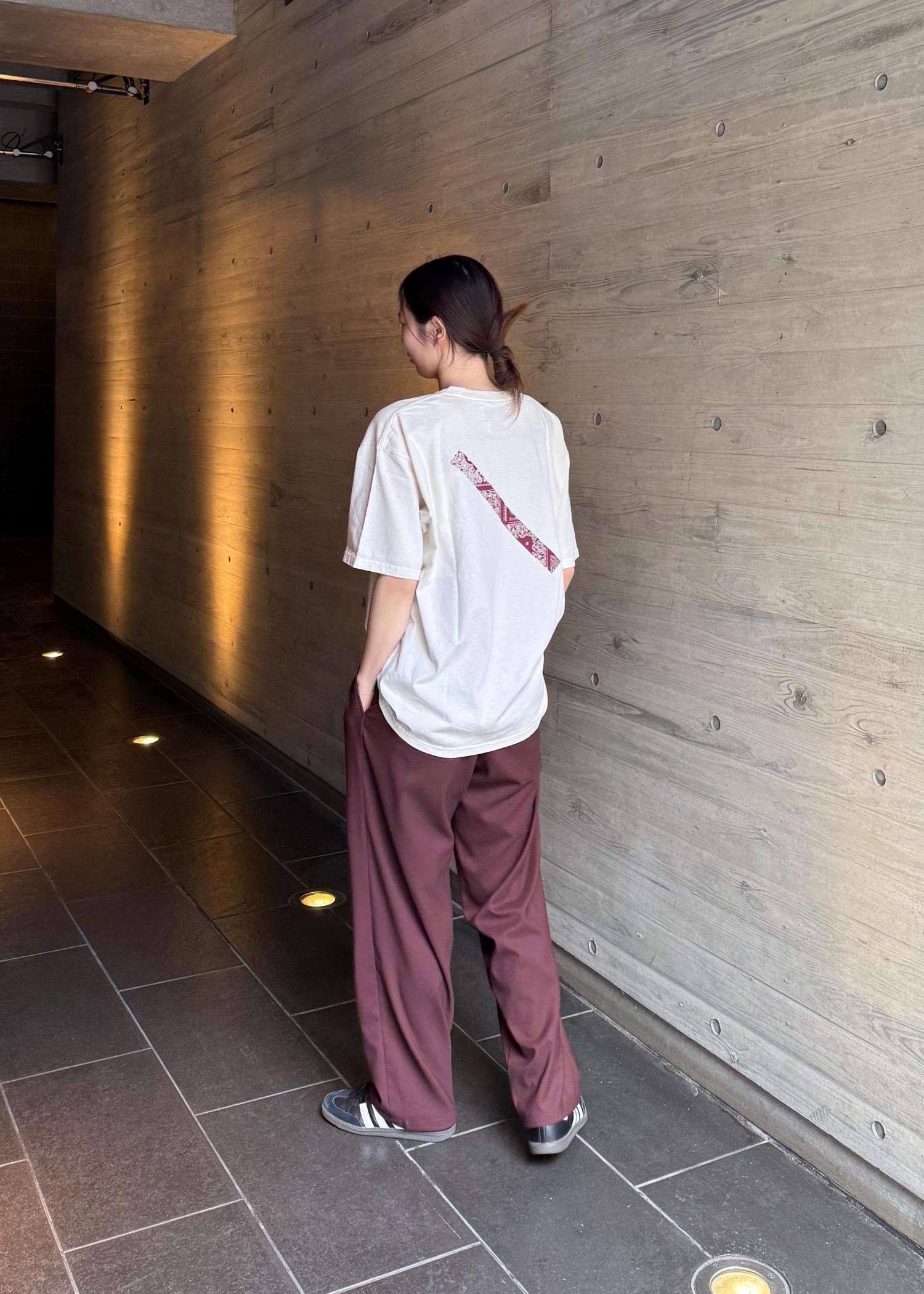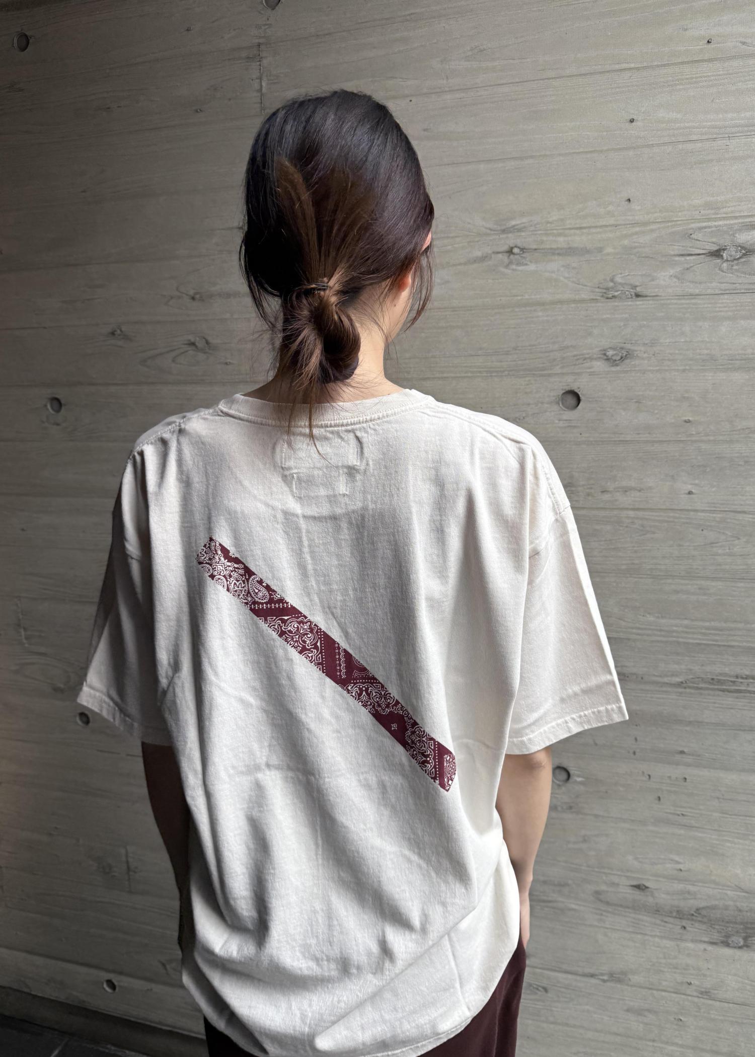 MIYAGIHIDETAKAオリジナルパッチワークのバンダナ柄をスラッシュで表現したバックプリントTシャツです。