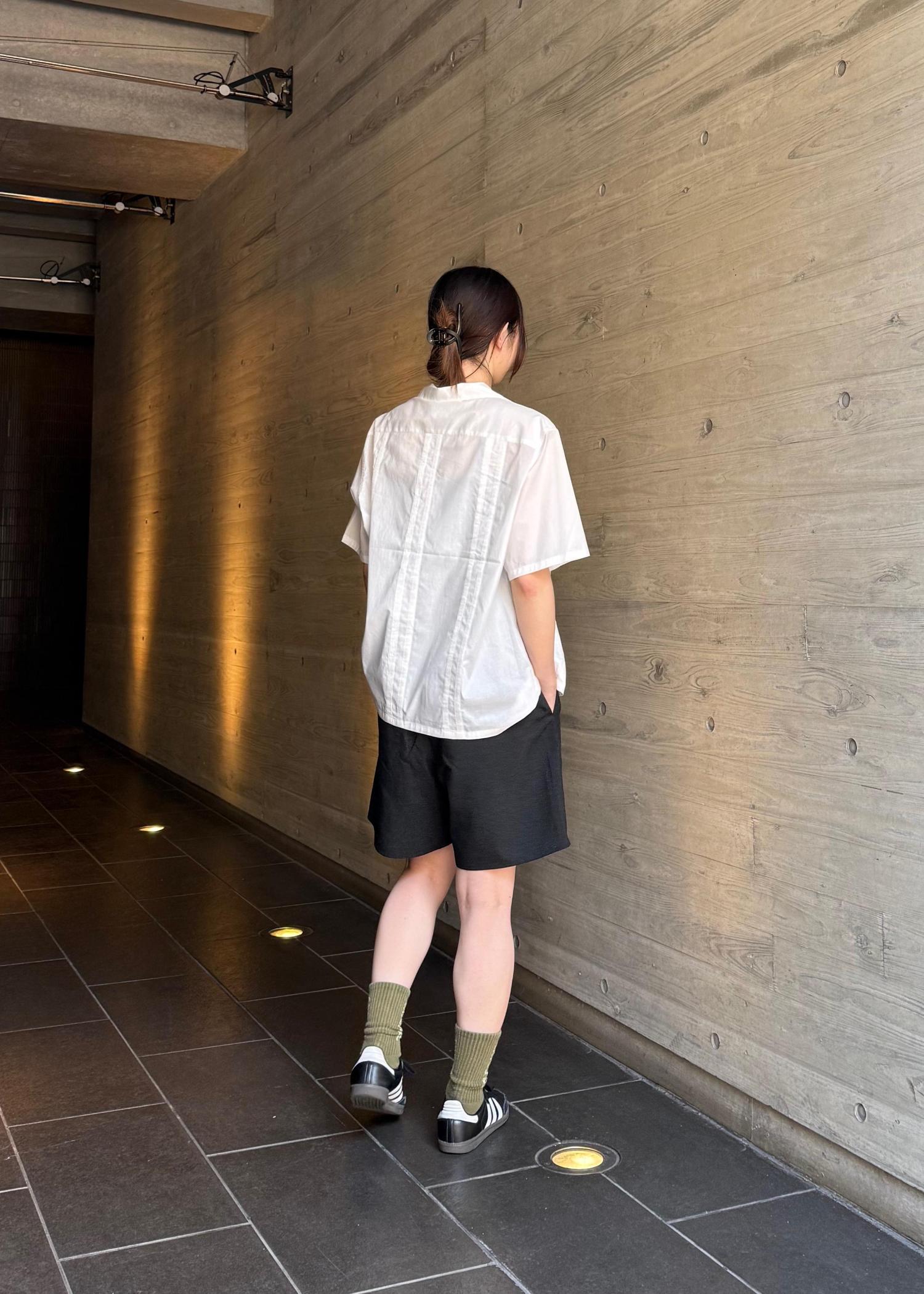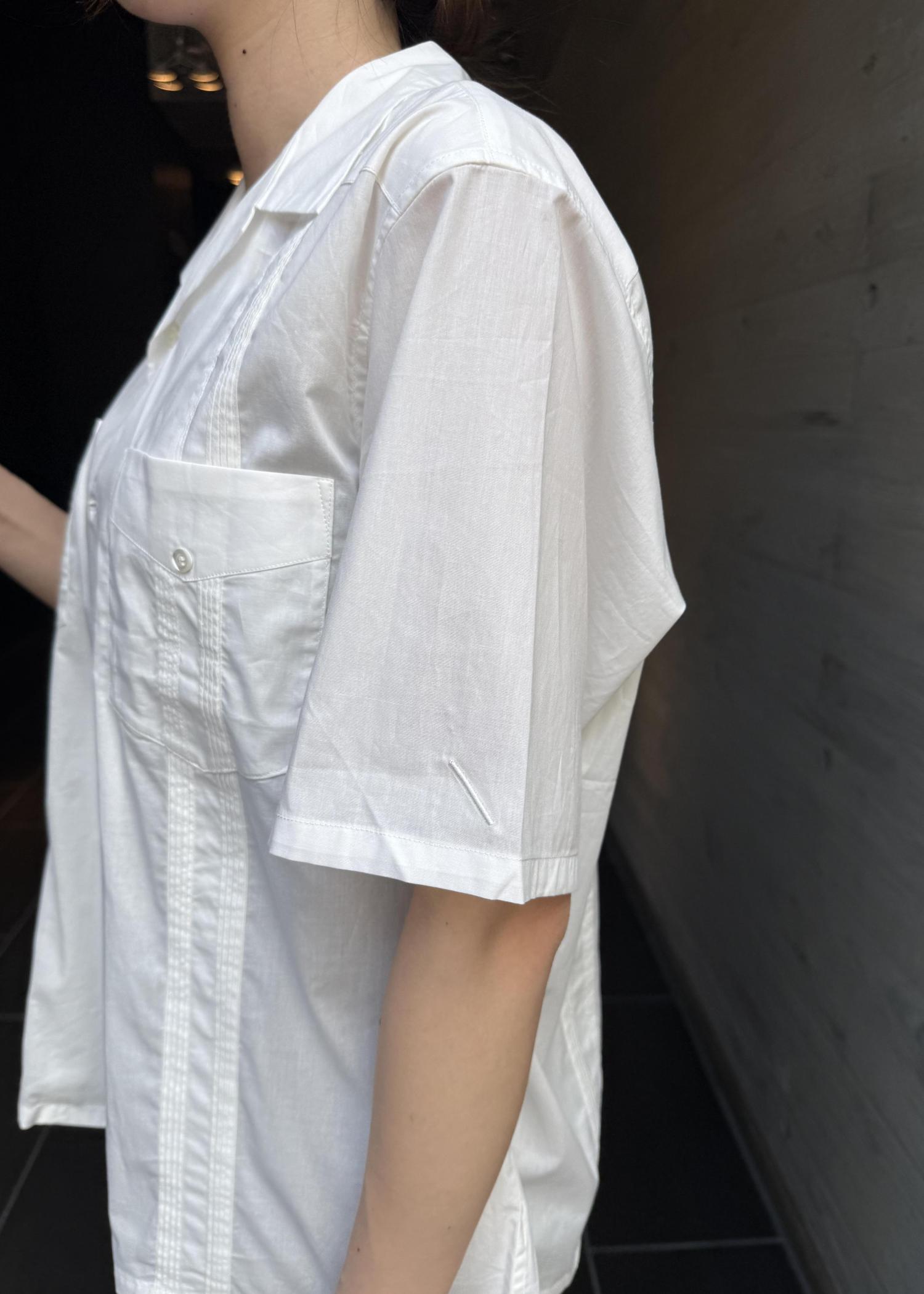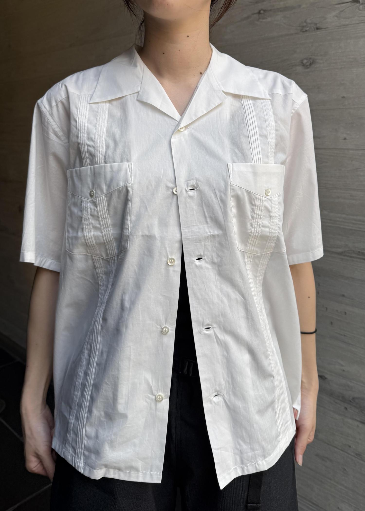 シャツはクラシックなキューバシャツから着想を得た、タックデザインが特徴的なオープンカラーシャツです。