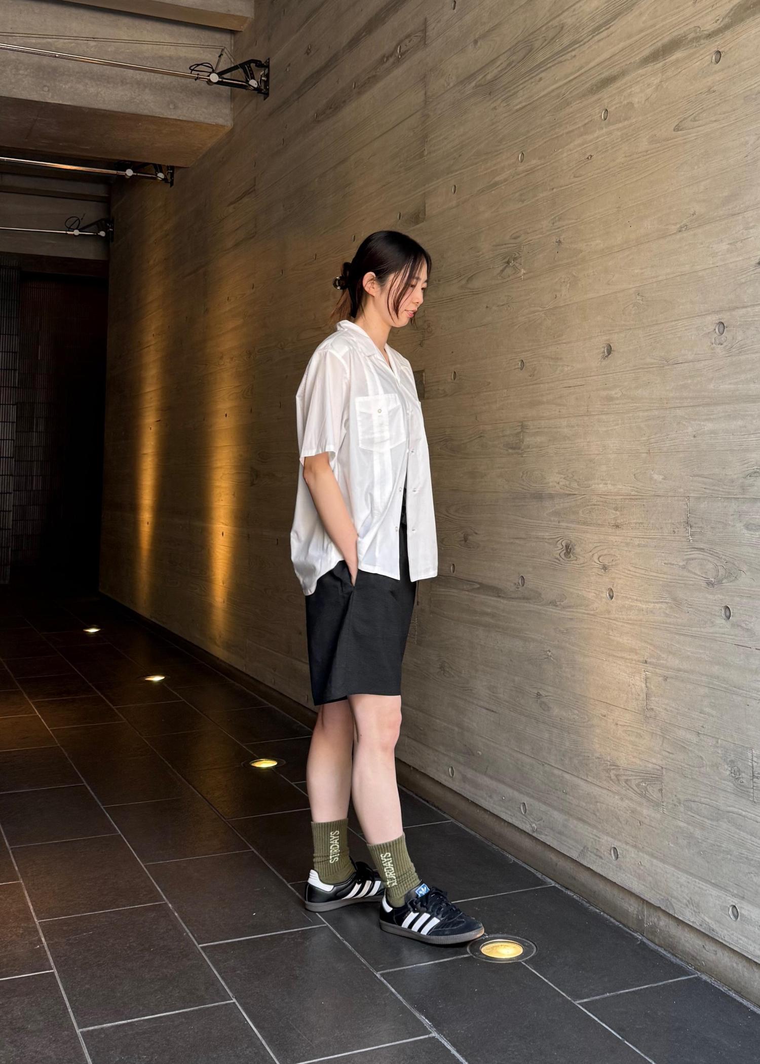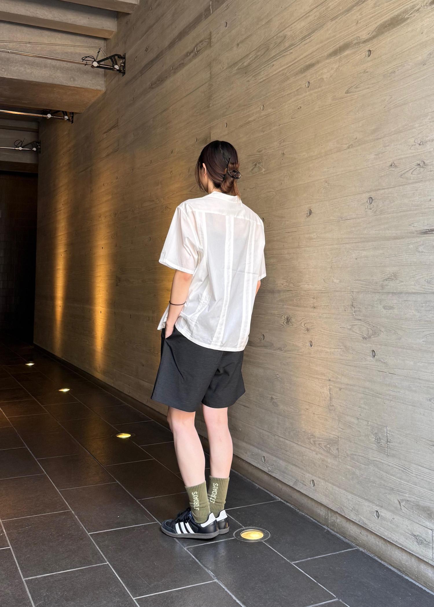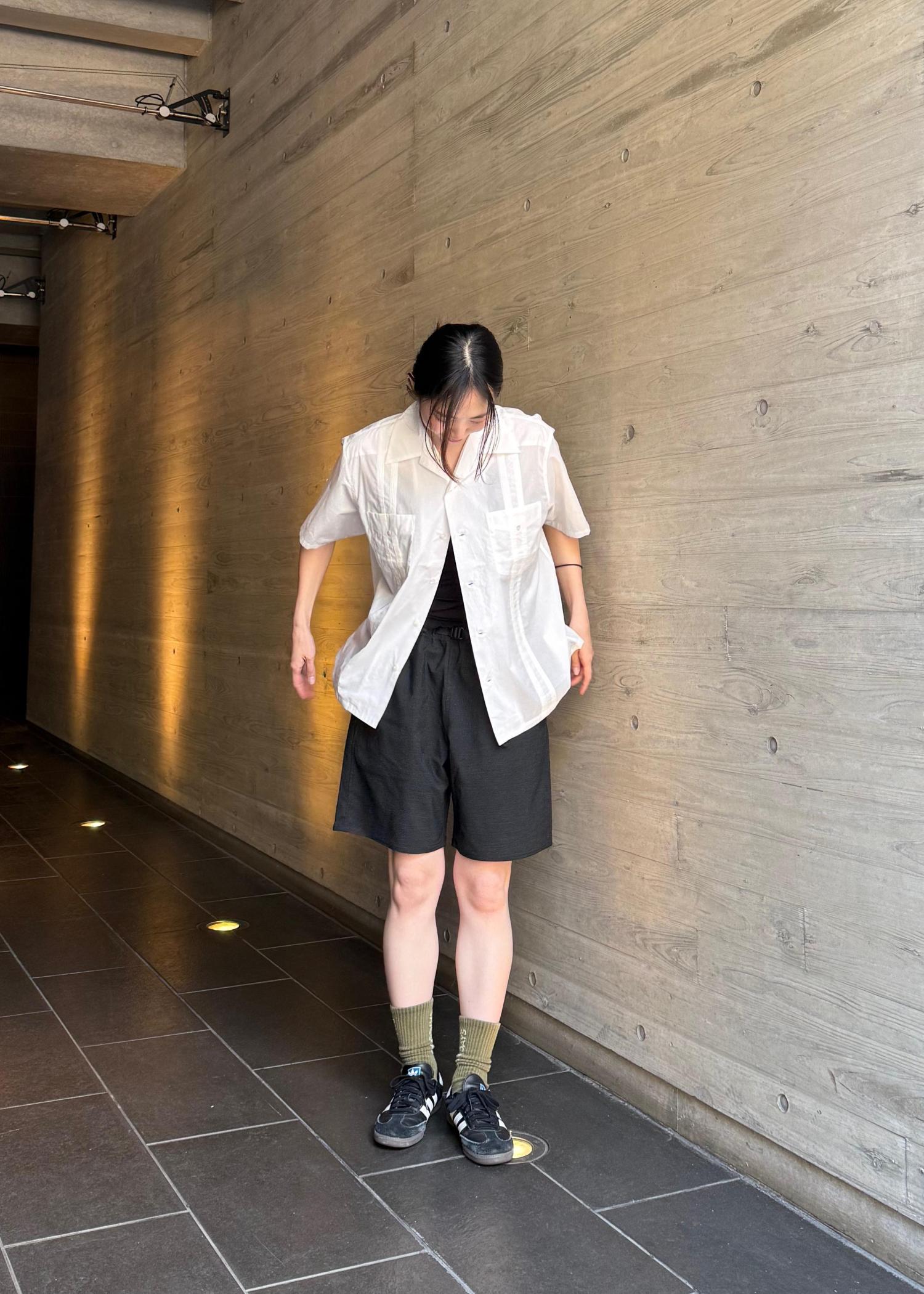シャツはクラシックなキューバシャツから着想を得た、タックデザインが特徴的なオープンカラーシャツです。