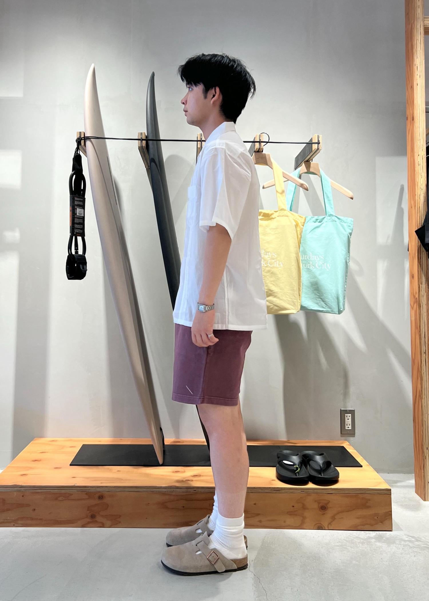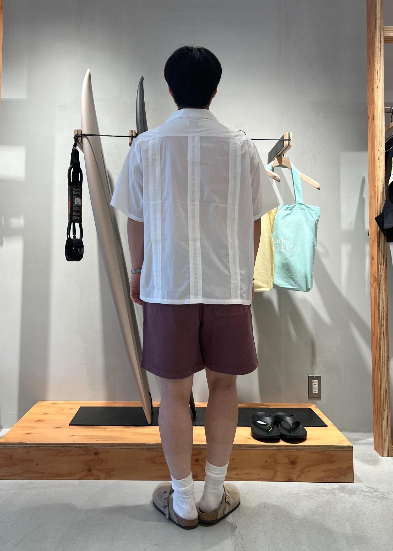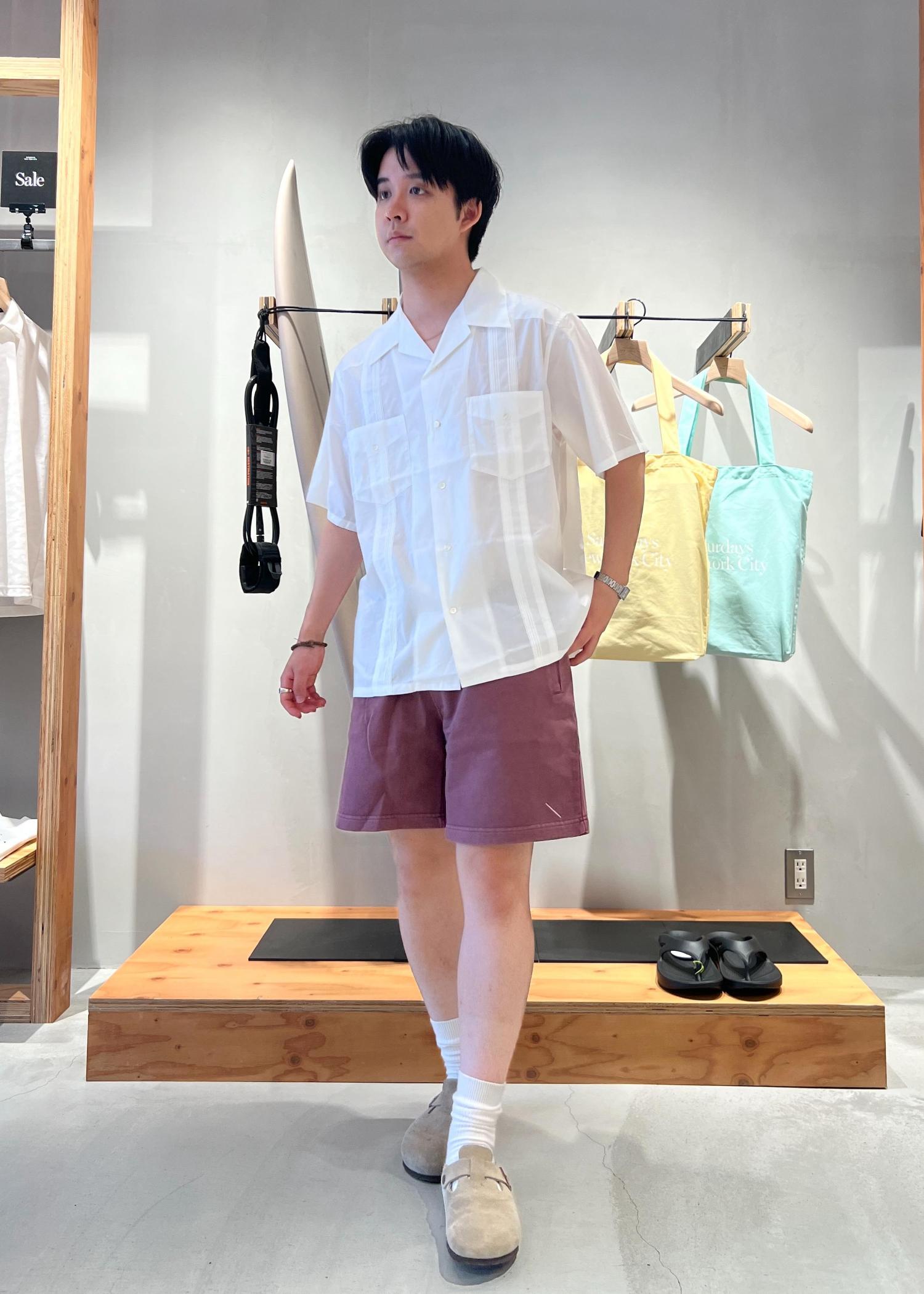 今回は、薄手のコットン素材を使用したキューバシャツにピグメント加工を施した、程よい厚みのスウェットショーツを合わせました!