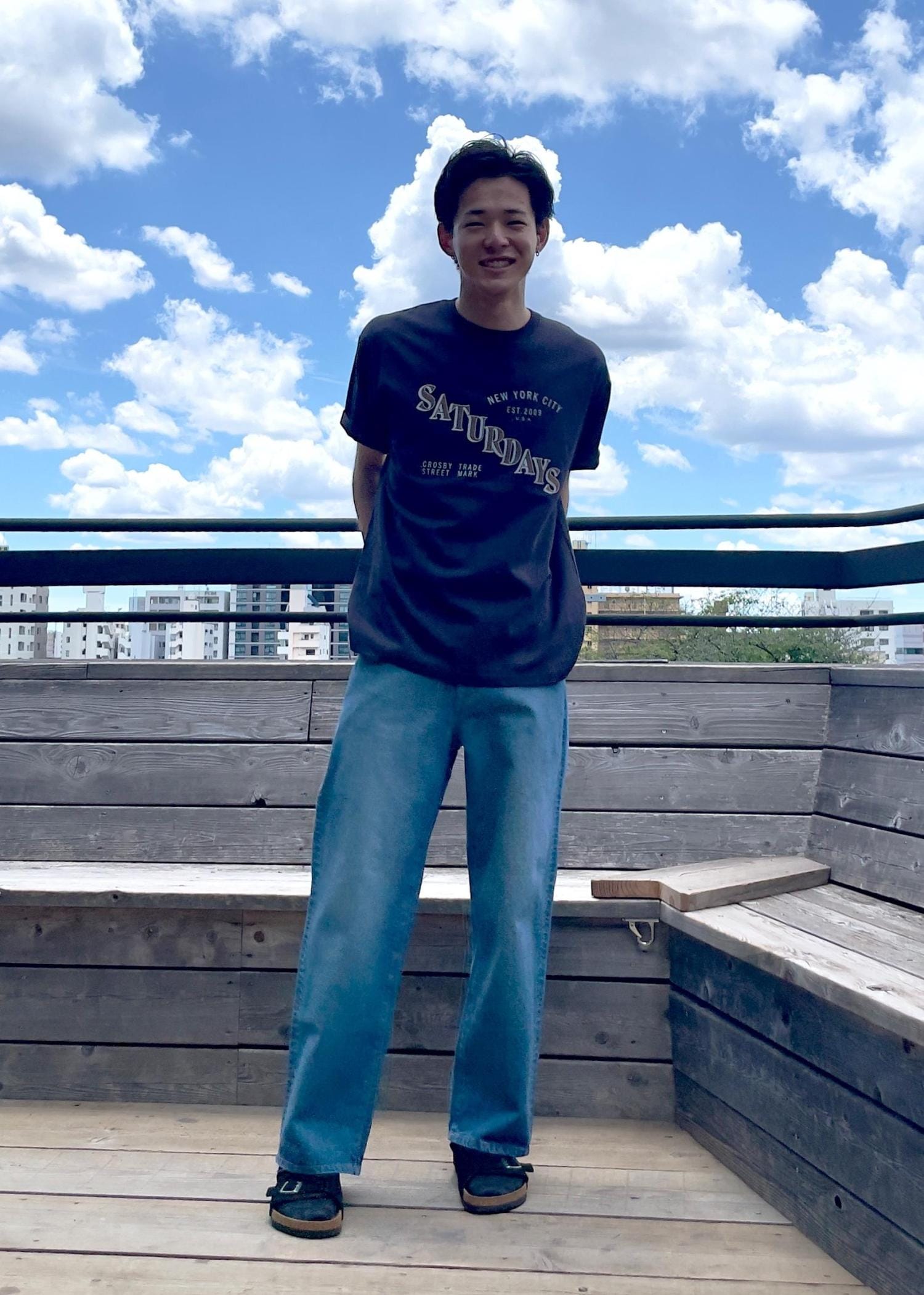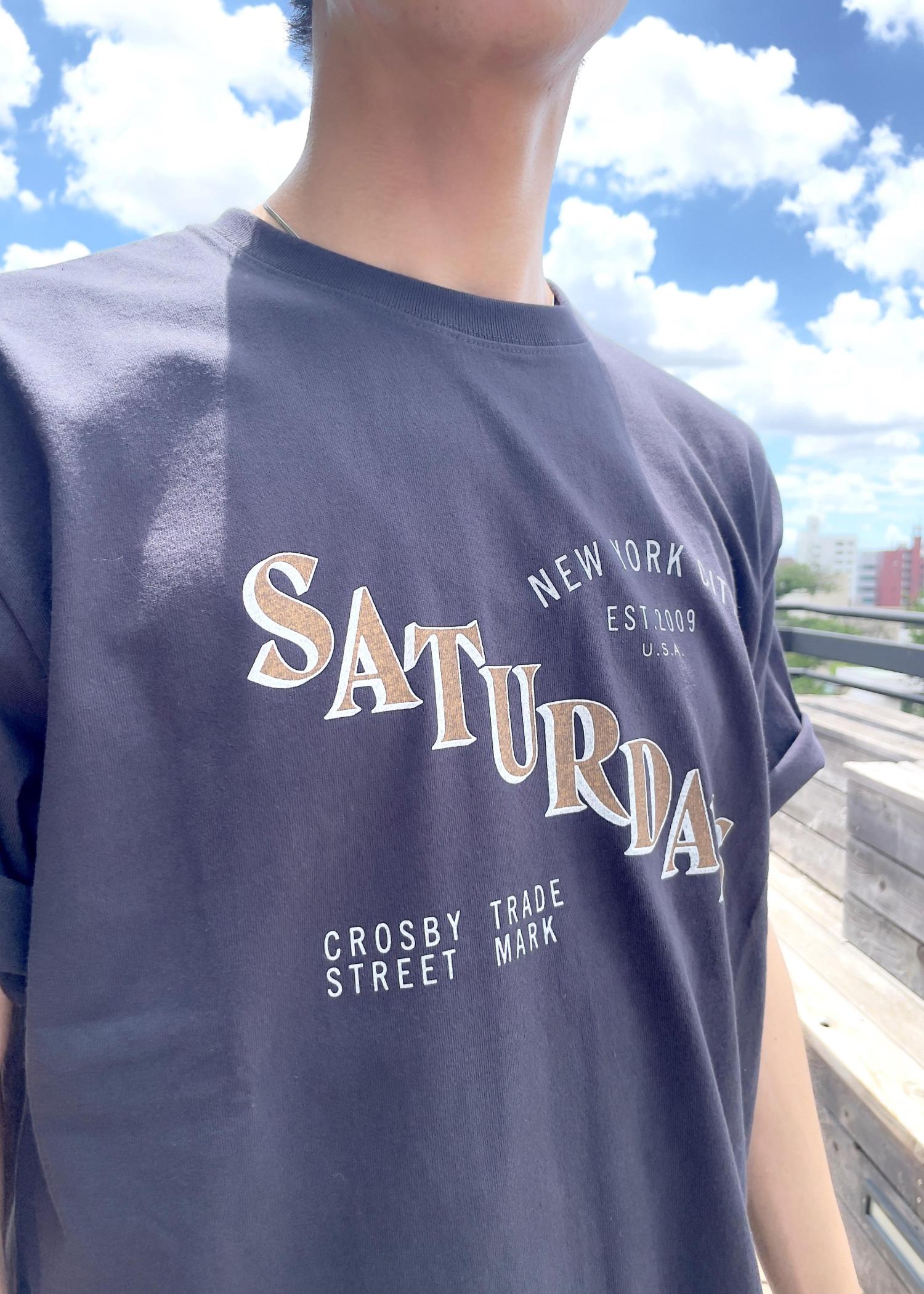 サタデーズNYCのシーズナルのグラフィックをフロントにプリントで落とし込んだ半袖Tシャツです。