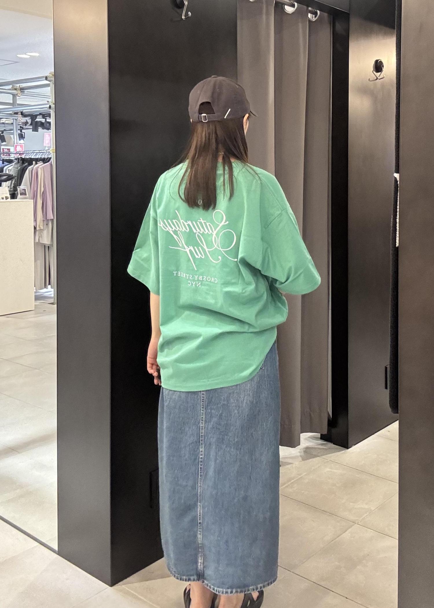 サタデーズNYCのシーズナルのグラフィックをバックにプリントで落とし込んだ半袖Tシャツです。
