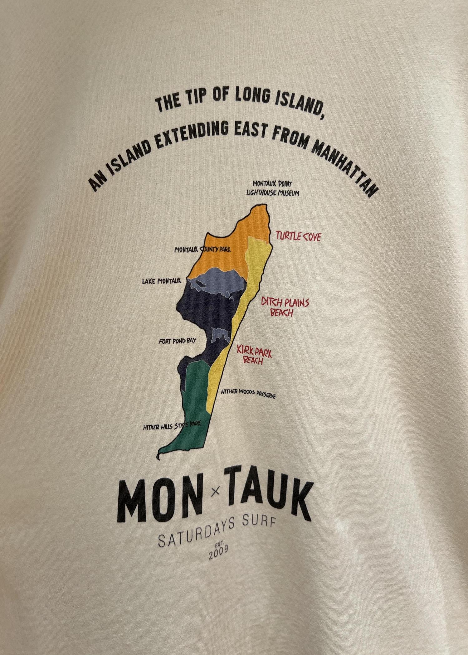 モントークのサーフスポットにフォーカスしたグラフィックがキャッチーなデザインで、程よくゆとりのあるサイジングは大人のアイテムに仕上がっております◎