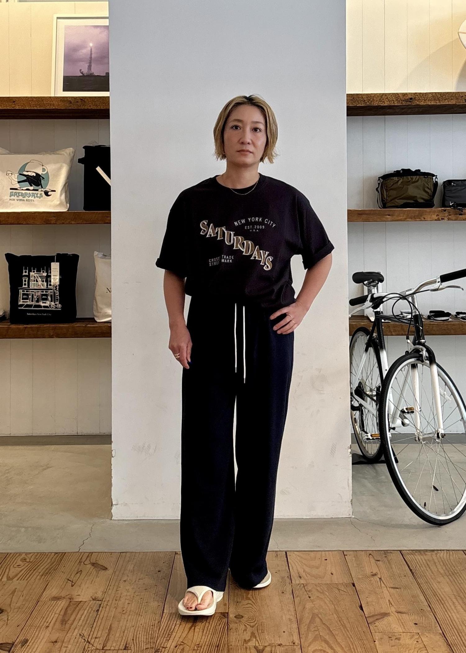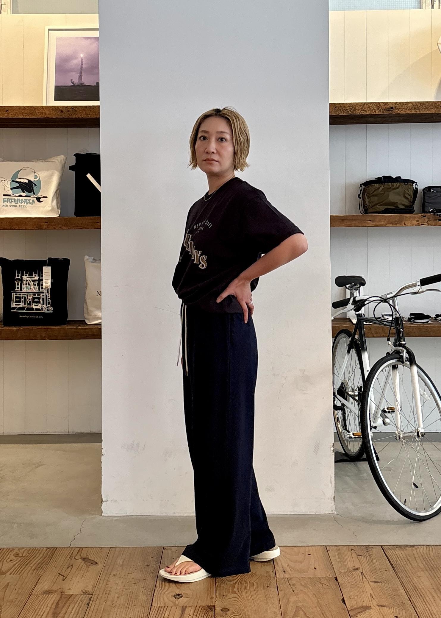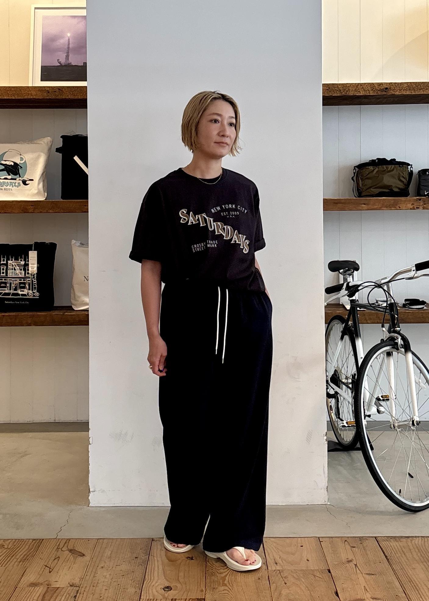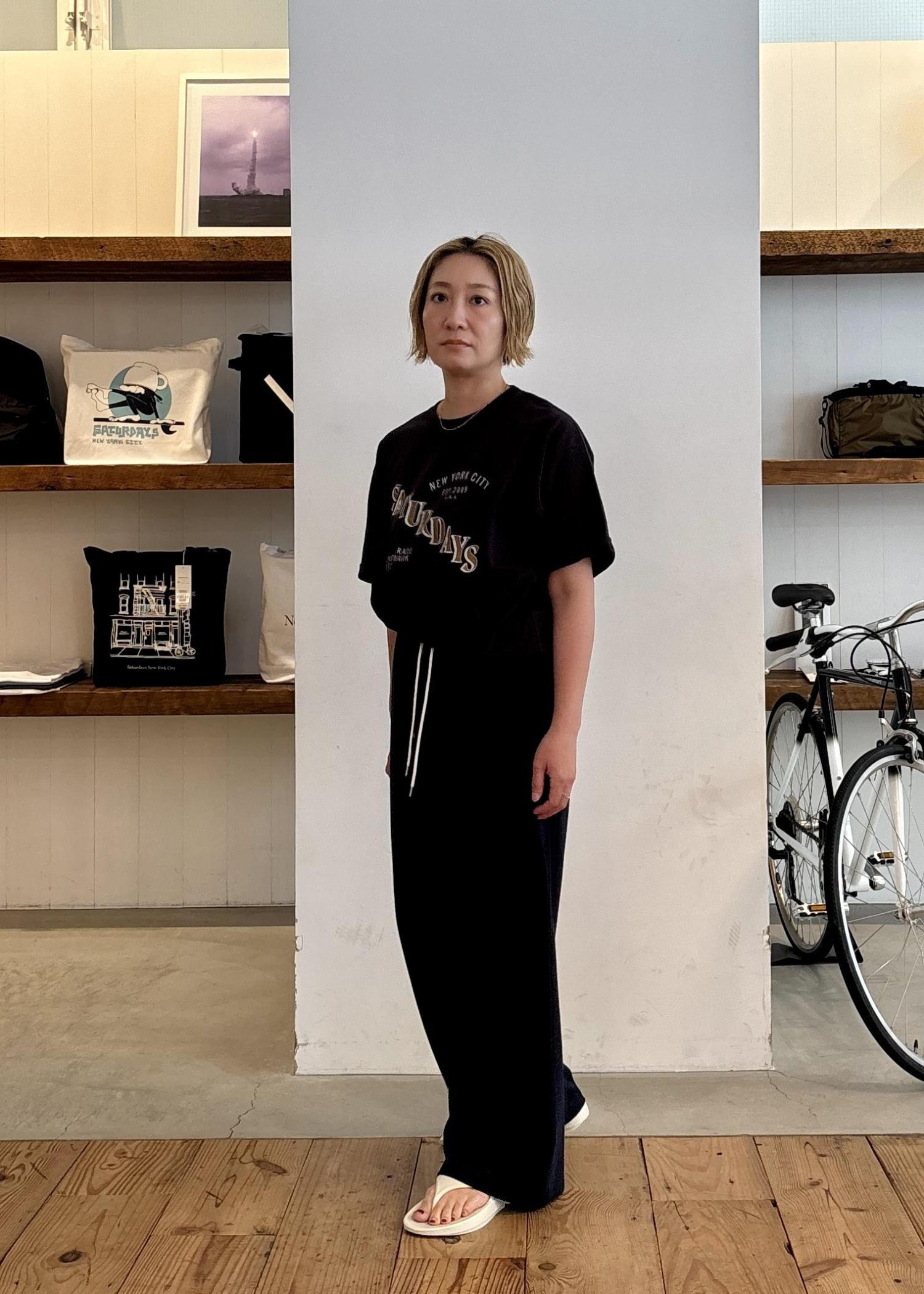 レトロ感漂うシーズナルプリントのTシャツは アメリカンな印象で色使いが新鮮です。 ワントーンでスウェットパンツと合わせてみました!
