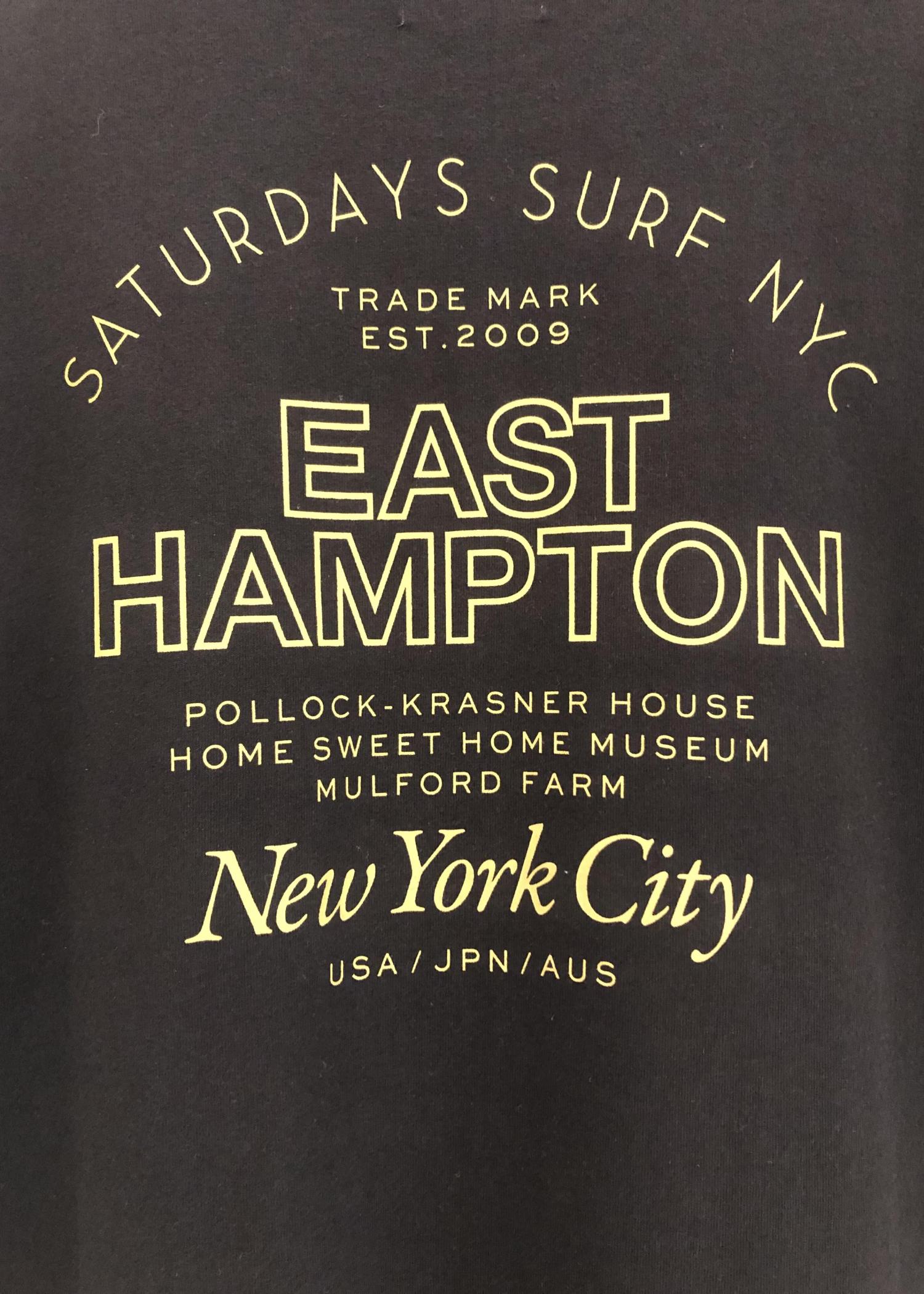 イーストハンプトンにフォーカスしたグラフィックをバックにプリントで落とし込んだ半袖Tシャツです。