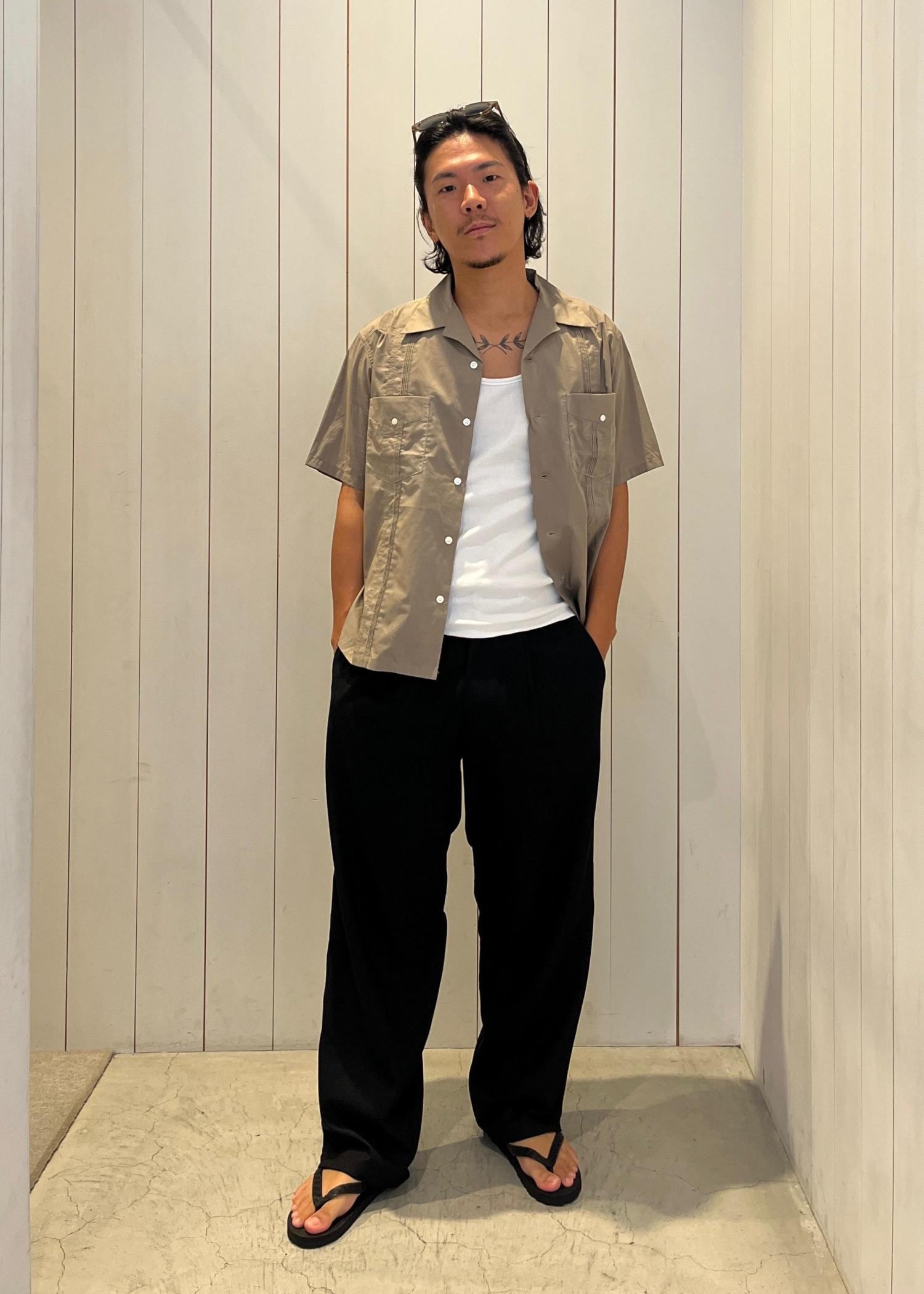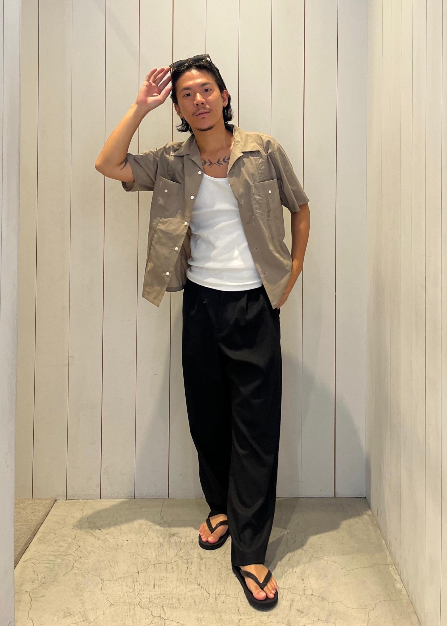 今回はシャツをタンクトップにさらっと羽織り、シンプルながら抜け感のある着こなしに!