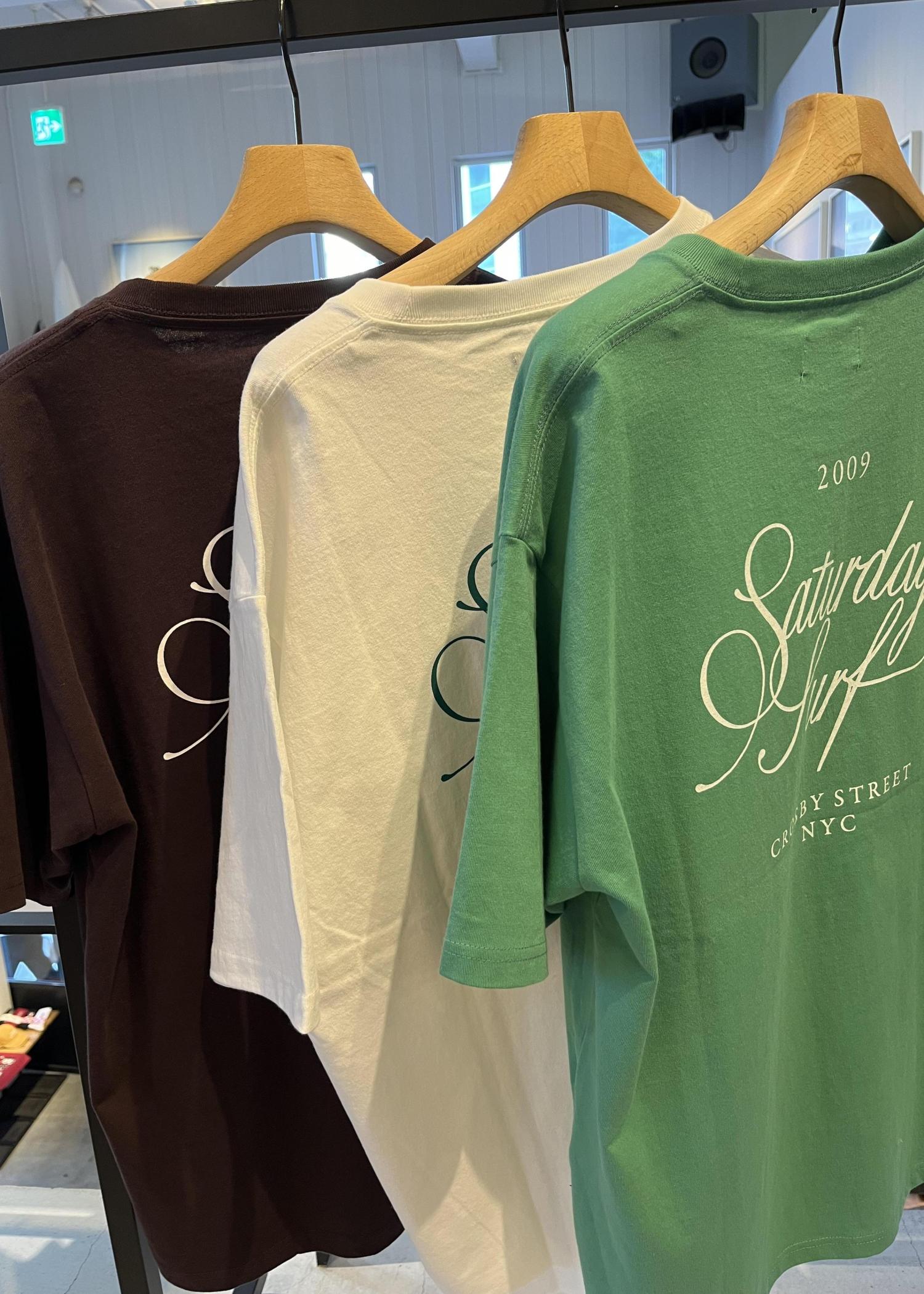 SaturdaysシーズナルグラフィックのバックロゴTeeと
