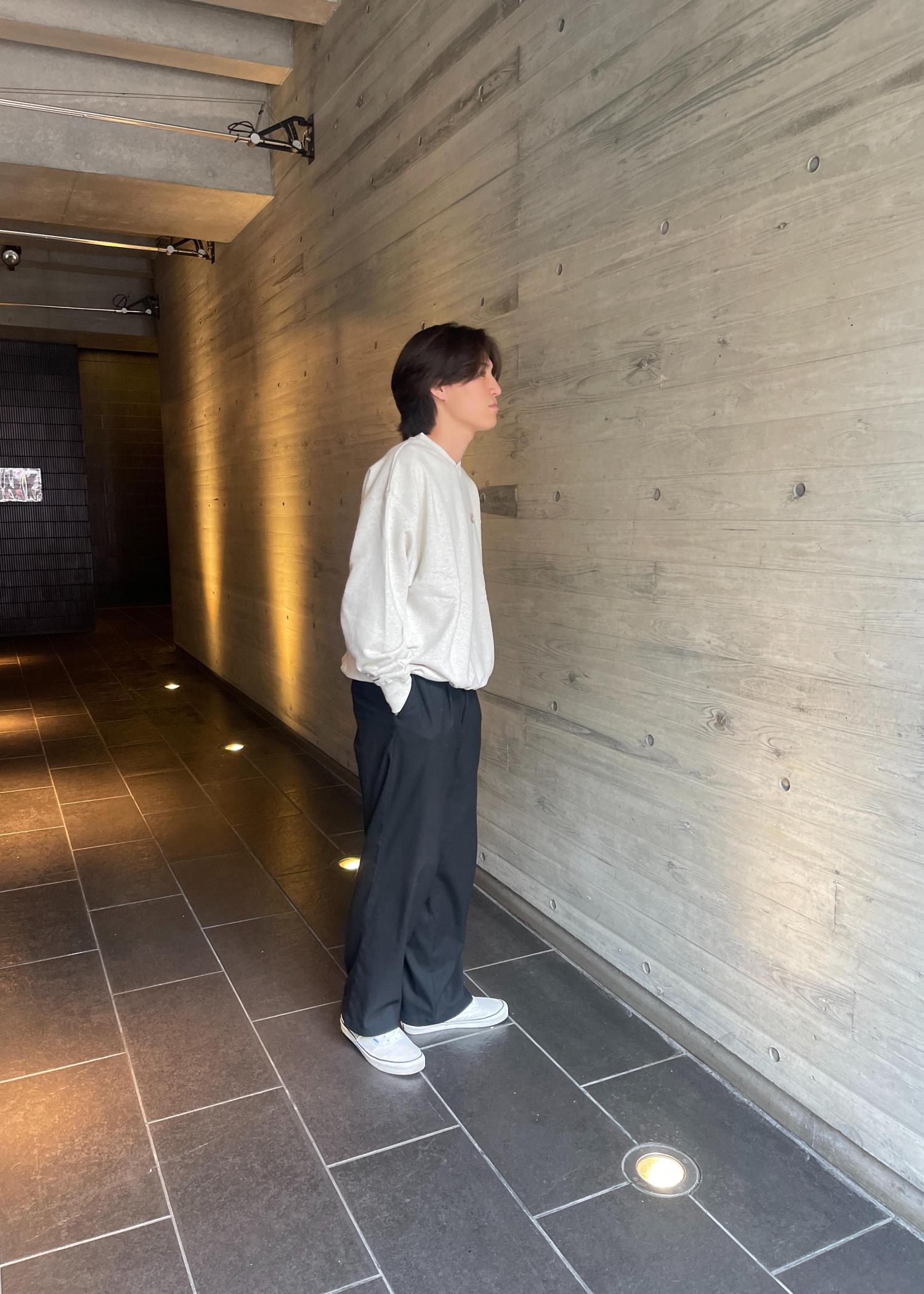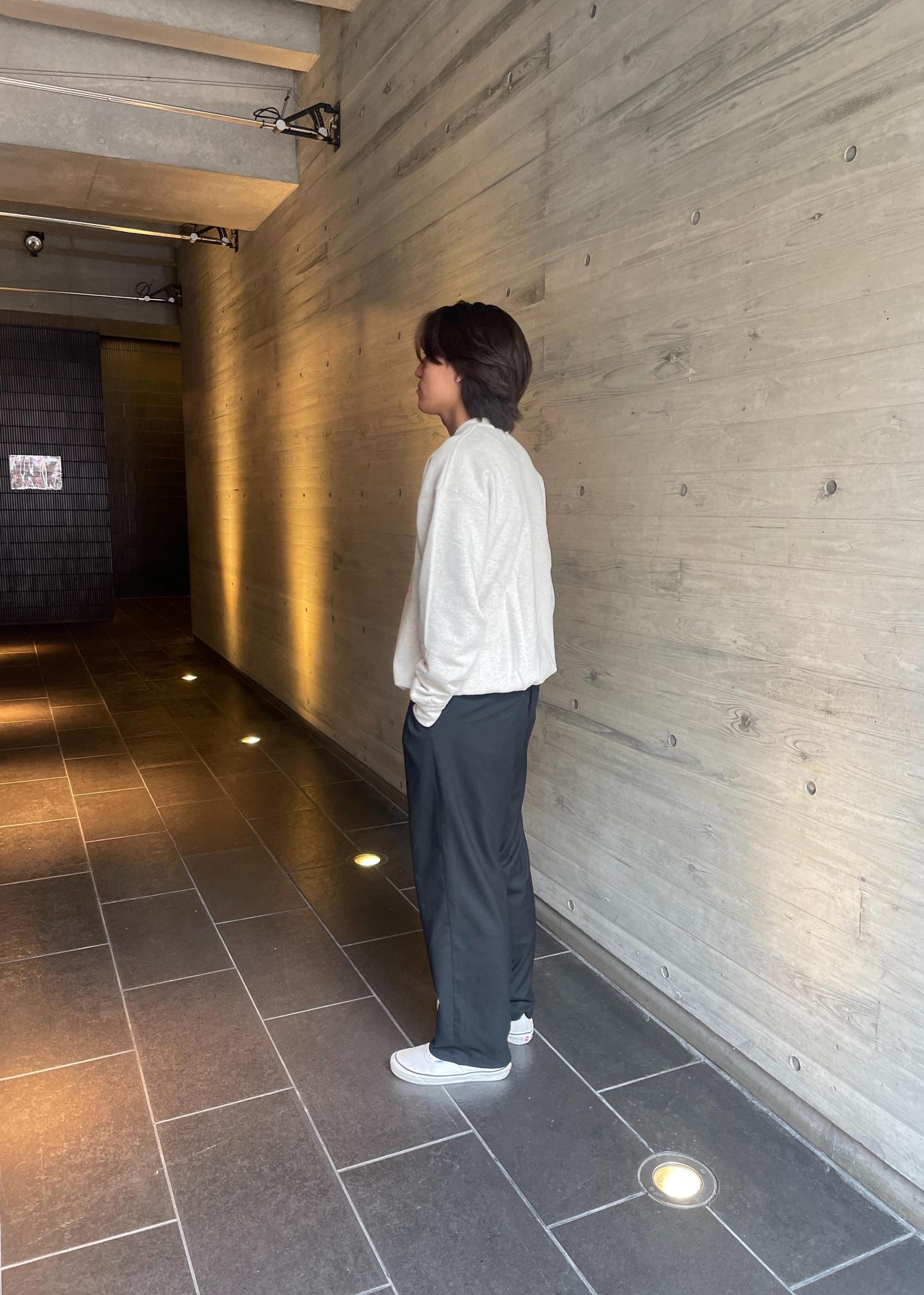 今回は、スラックスで合わせましたがデニムやチノパンなどキレイめからカジュアルまで実現できます