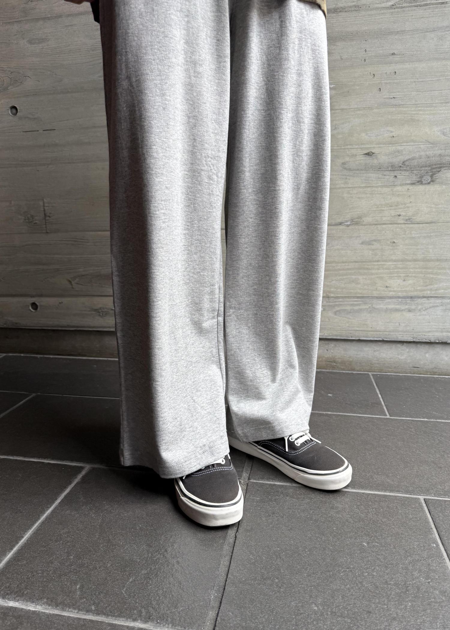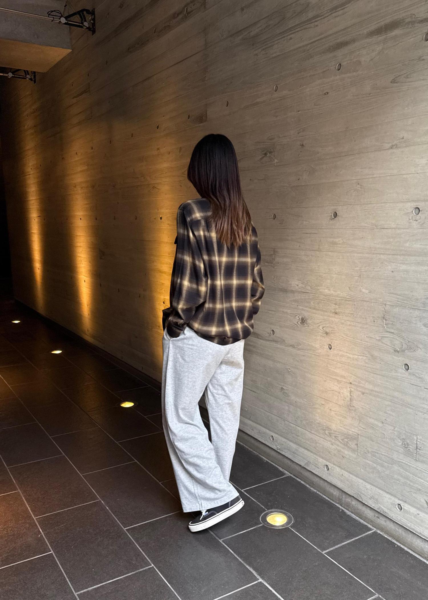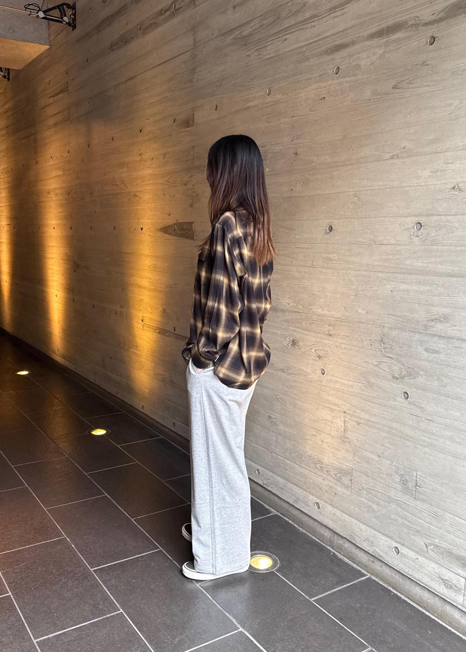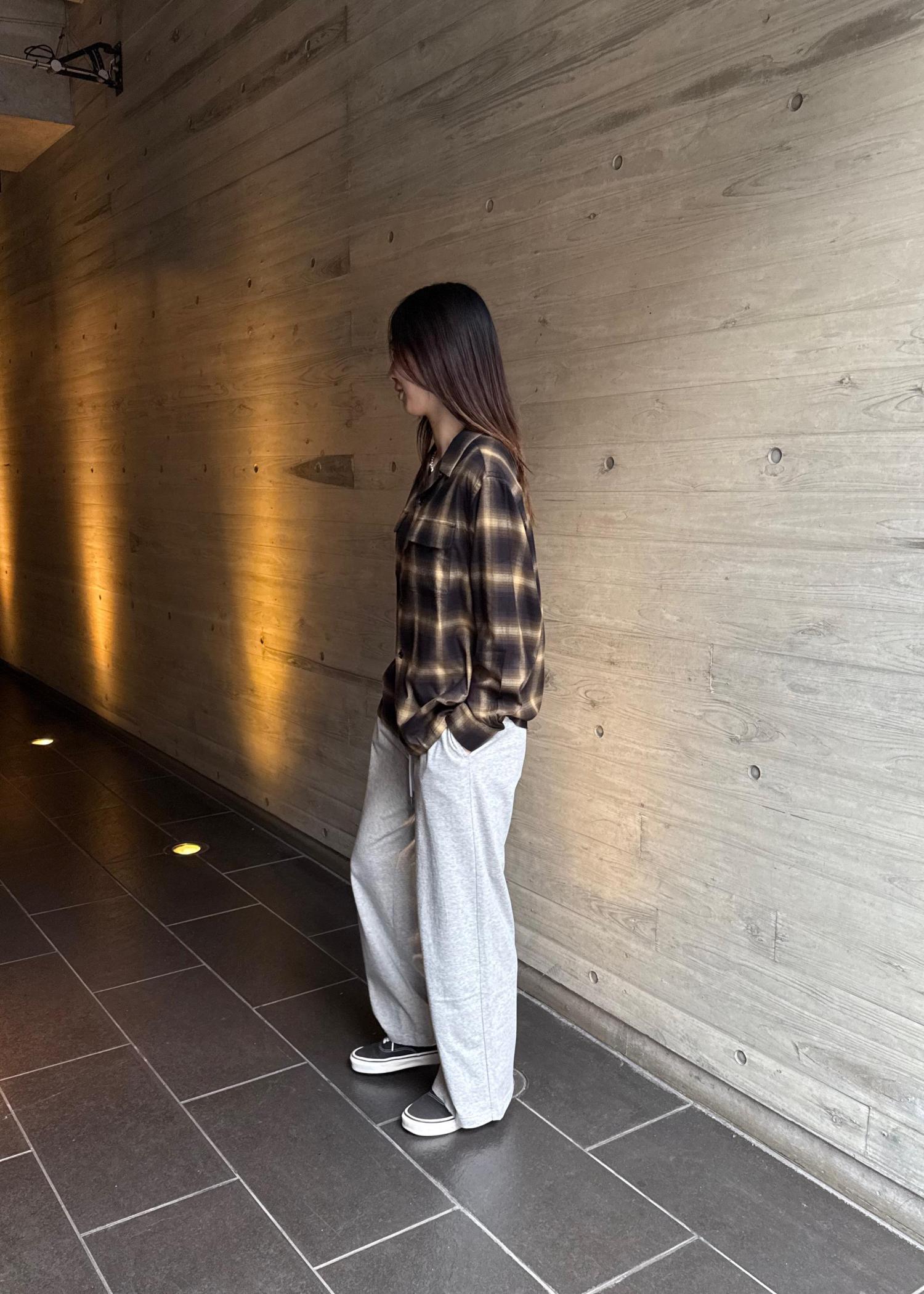 シーズン問わず着用できるミニ裏毛素材のジャージパンツ。ウエストはシャリ感のある度詰め鹿の子素材で安定感あるデザイン。