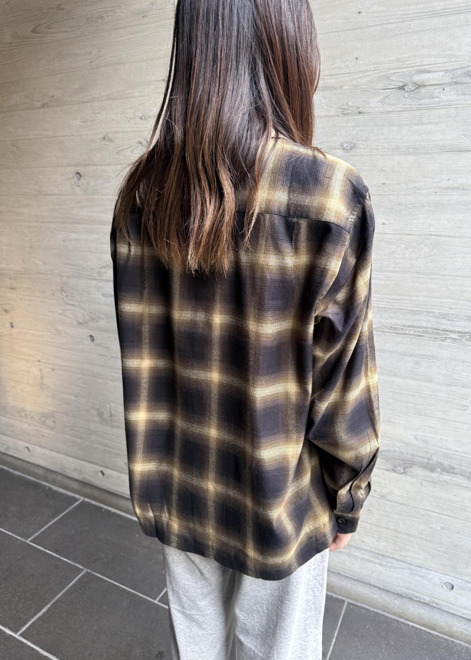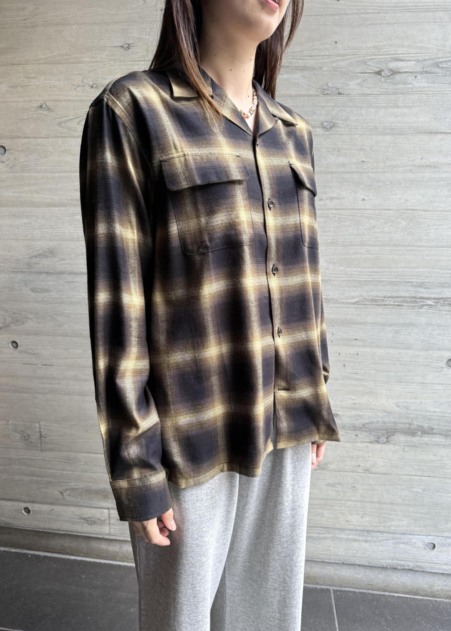 落ち着いた配色のオンブレチェック柄を活かしたミニマルなデザインは、汎用性が高い大人のオープンカラーシャツに仕上がっています。