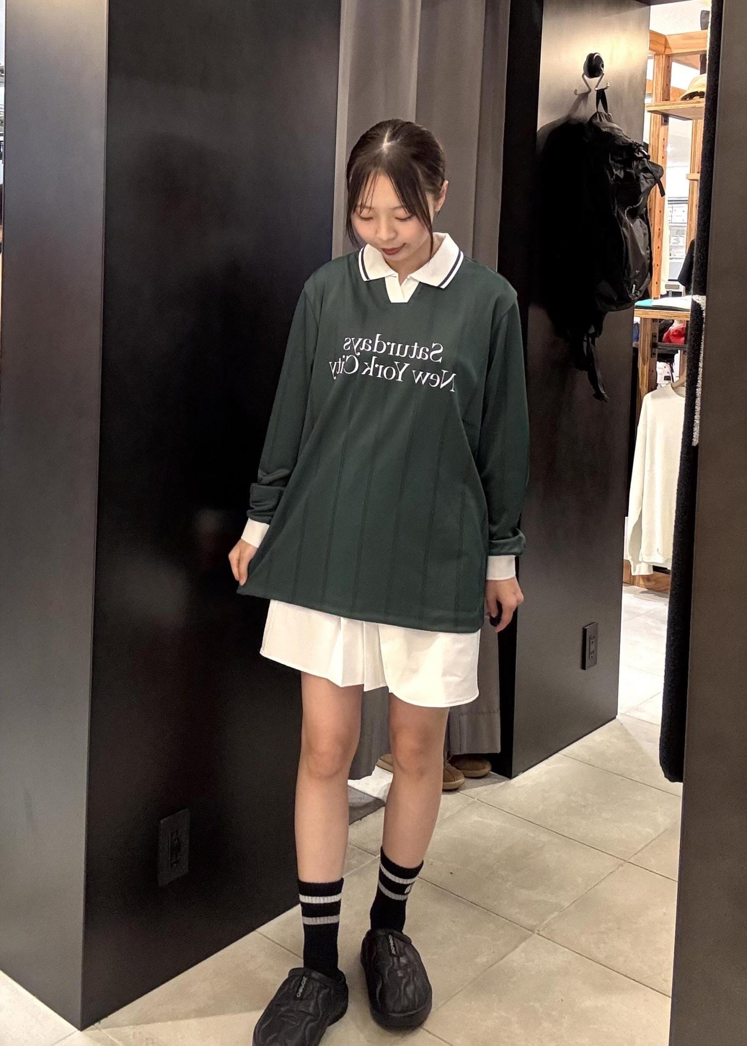 スポーティー感が強いトップスでも、スカートと合わせると女性でも可愛く着こなすことができます!