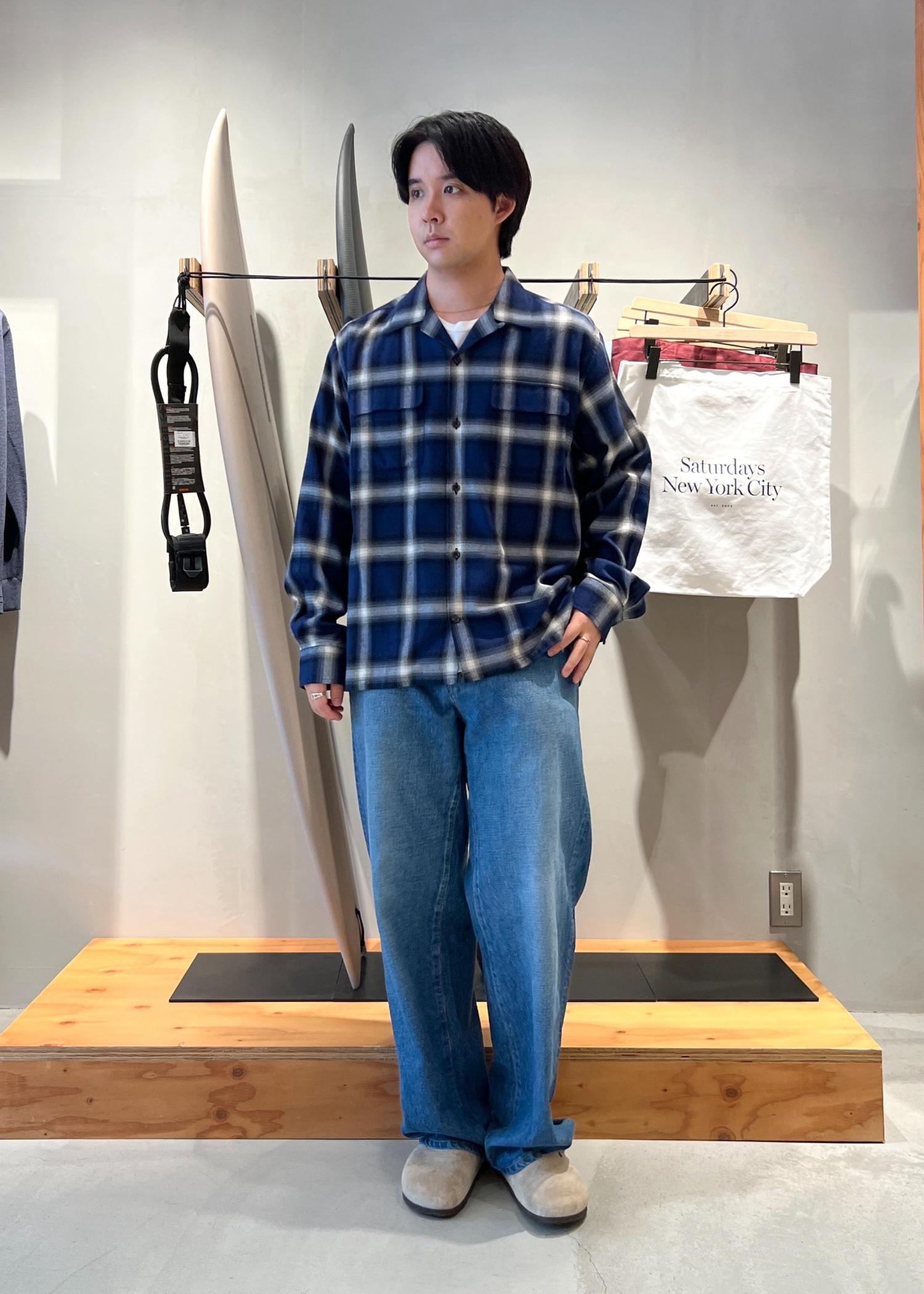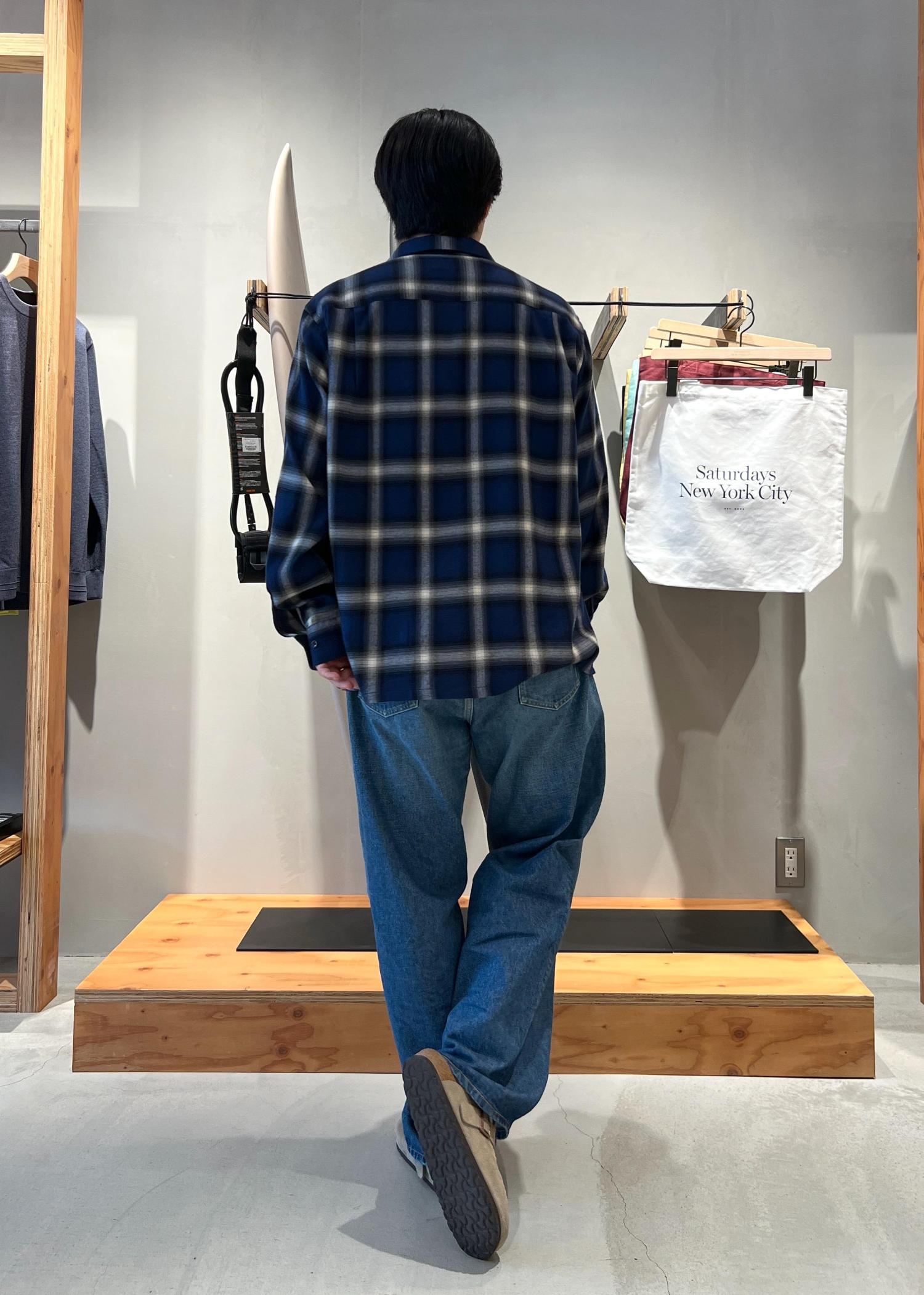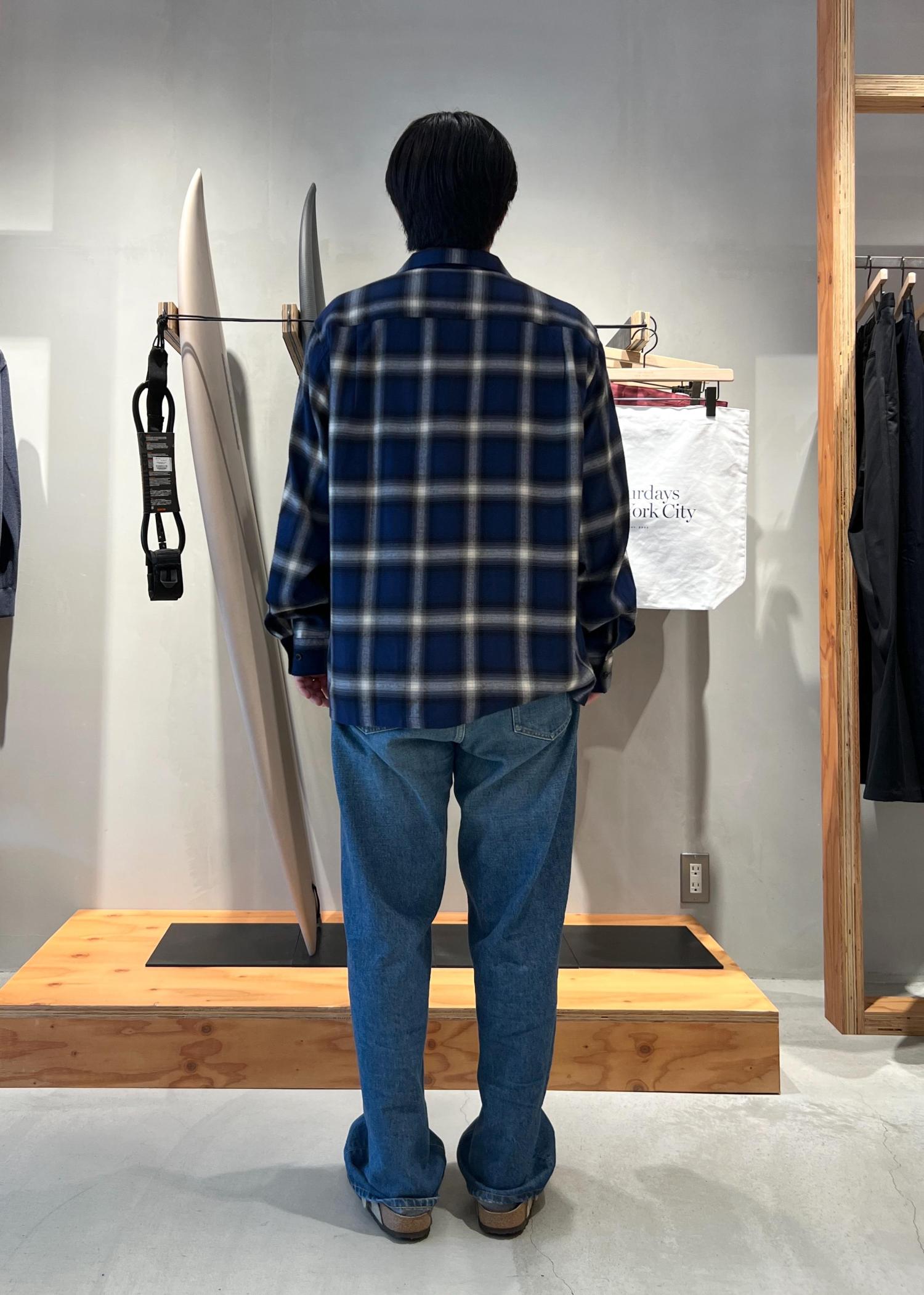 今回着用している新作のシャツは、程良いふくらみと適度な落ち感が特徴的なコットンレーヨンの先染めオンブレチェックに軽い起毛加工を施したフランネルなので上品さの中に無骨さを感じる素材になっています!^^
