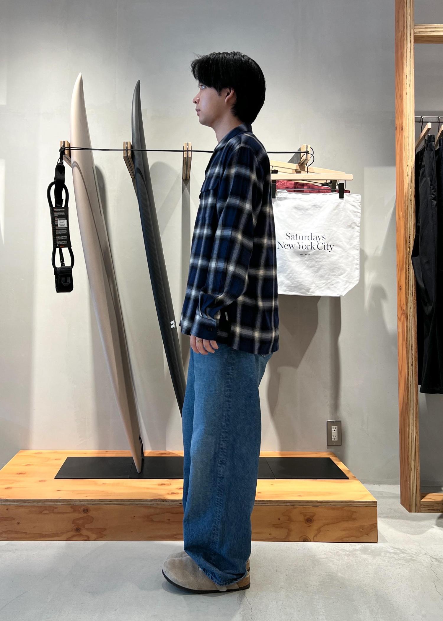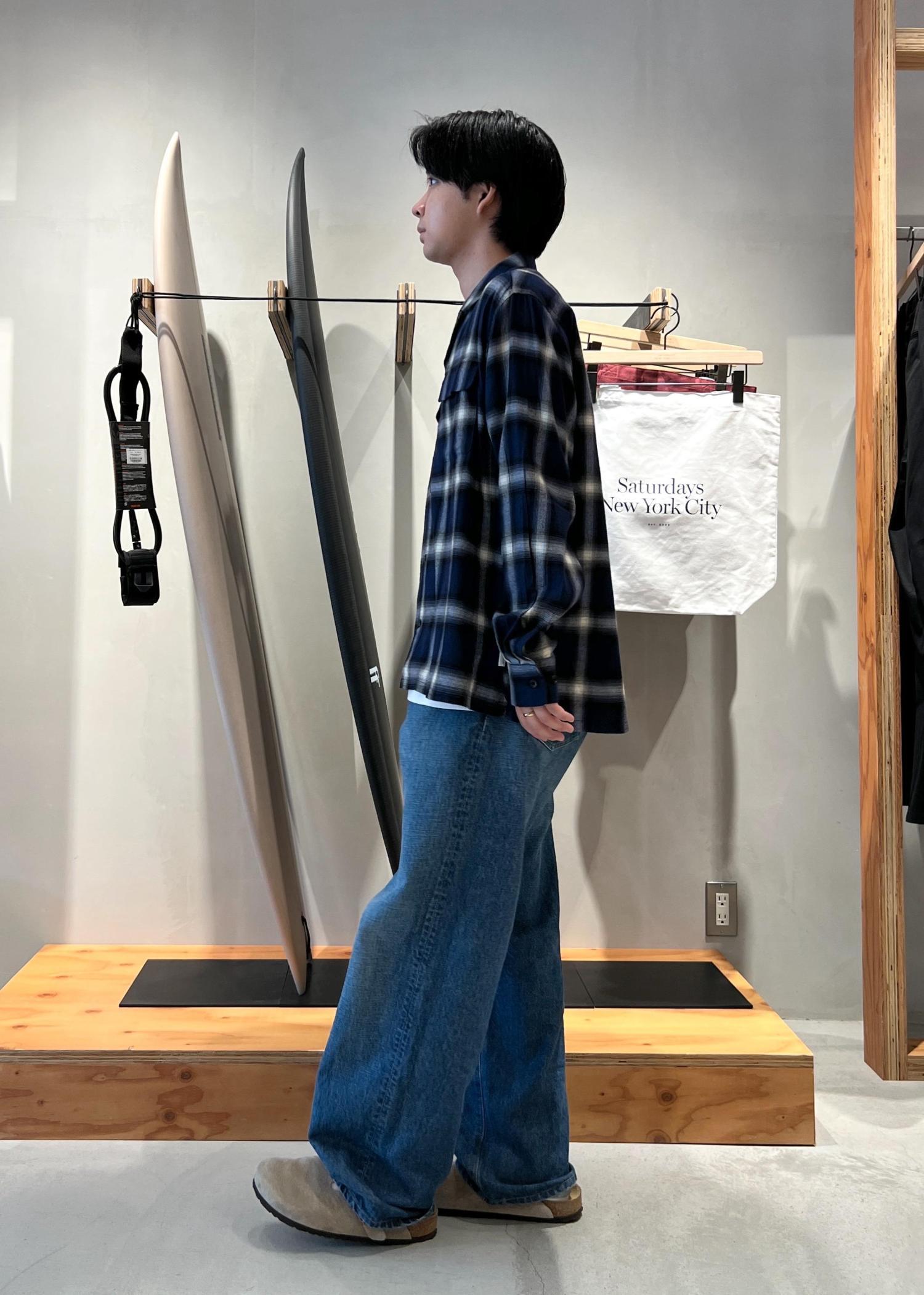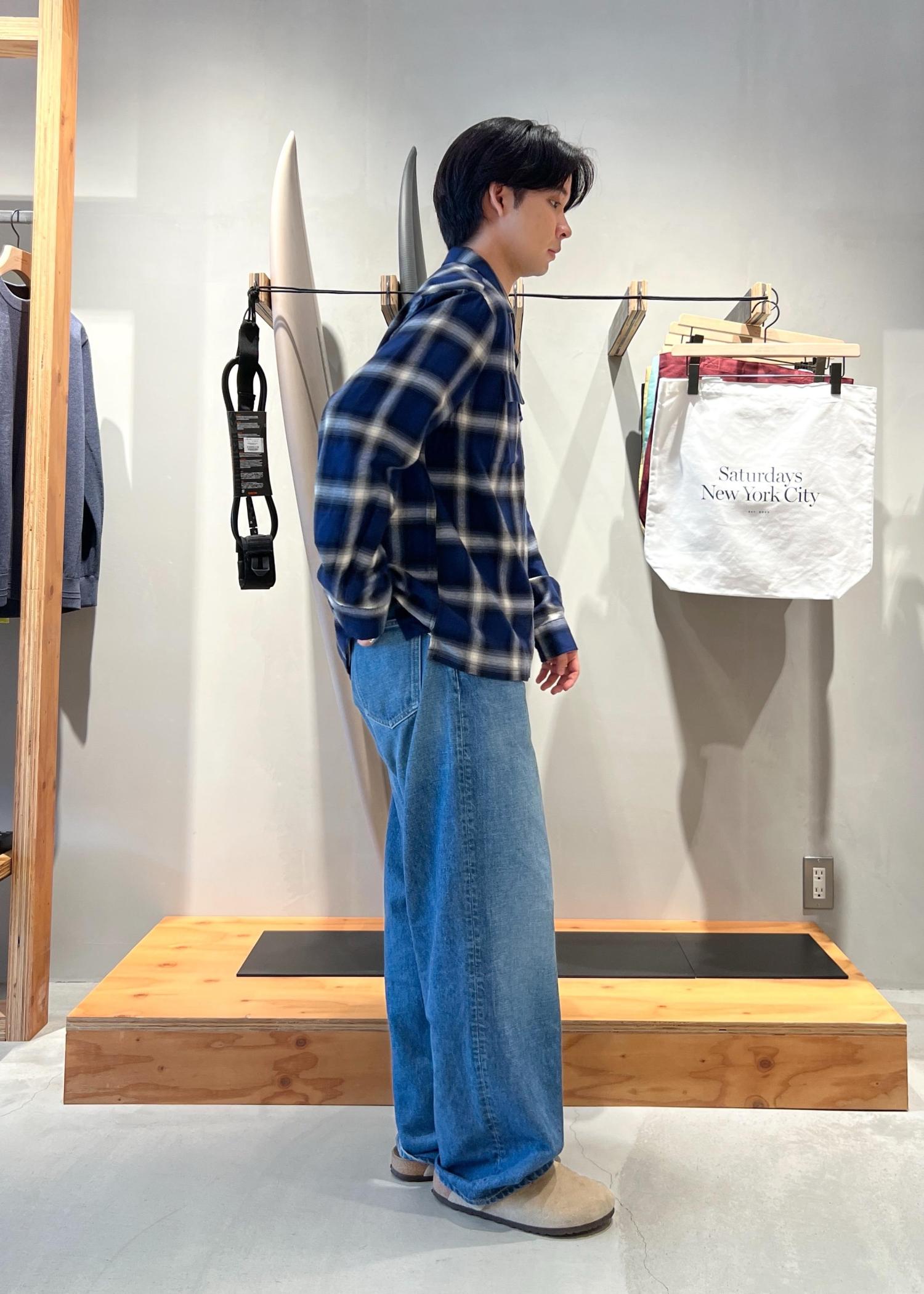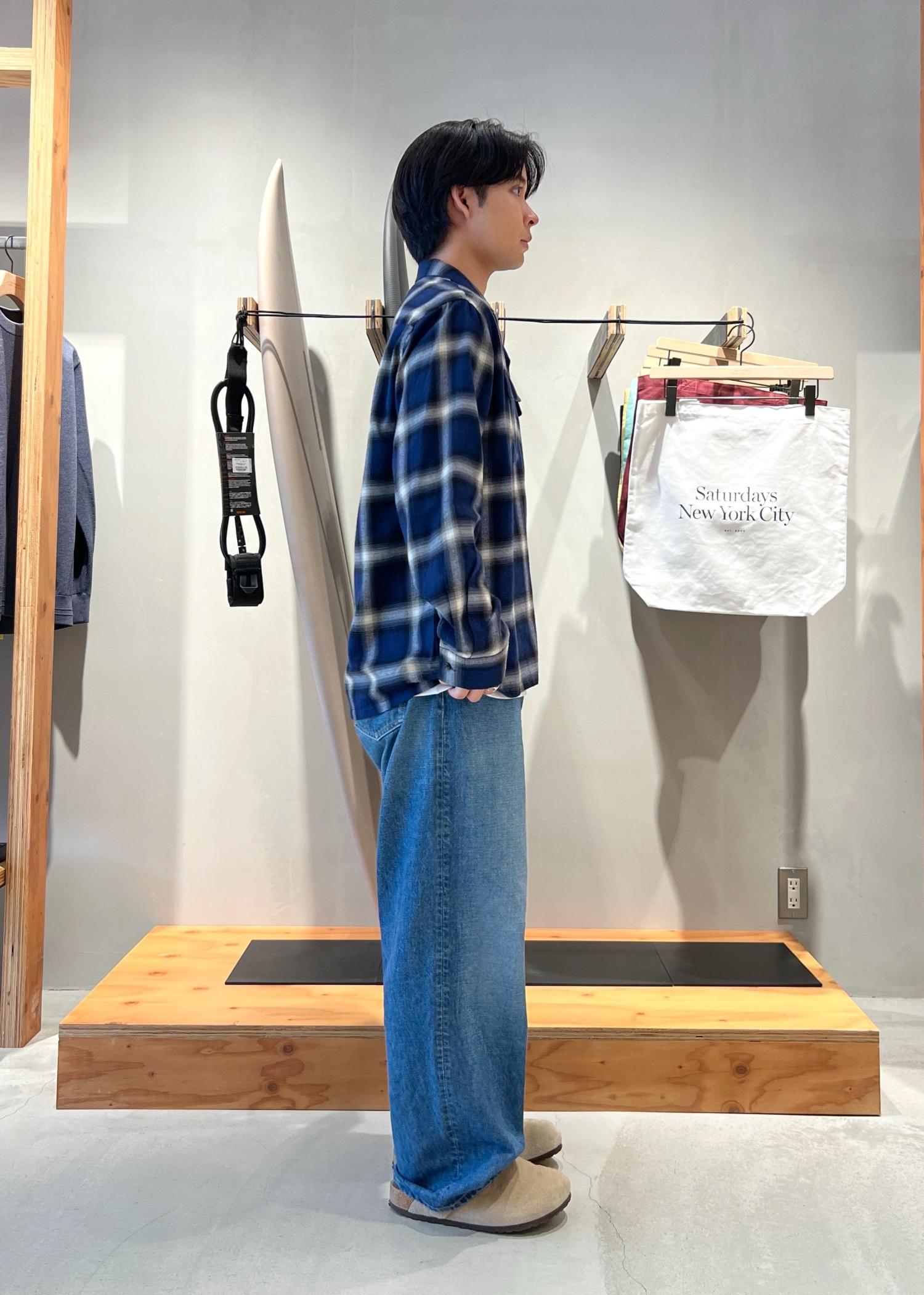 今回着用している新作のシャツは、程良いふくらみと適度な落ち感が特徴的なコットンレーヨンの先染めオンブレチェックに軽い起毛加工を施したフランネルなので上品さの中に無骨さを感じる素材になっています!^^