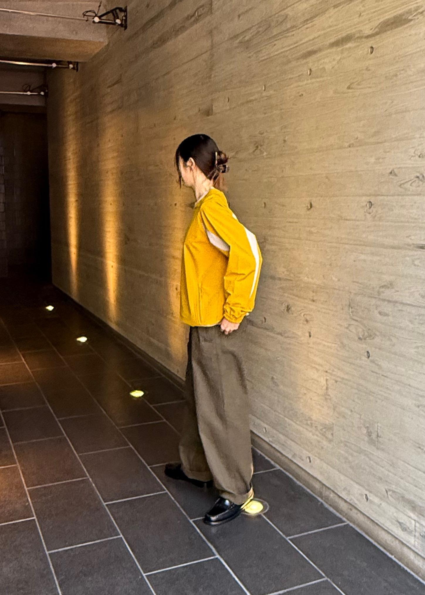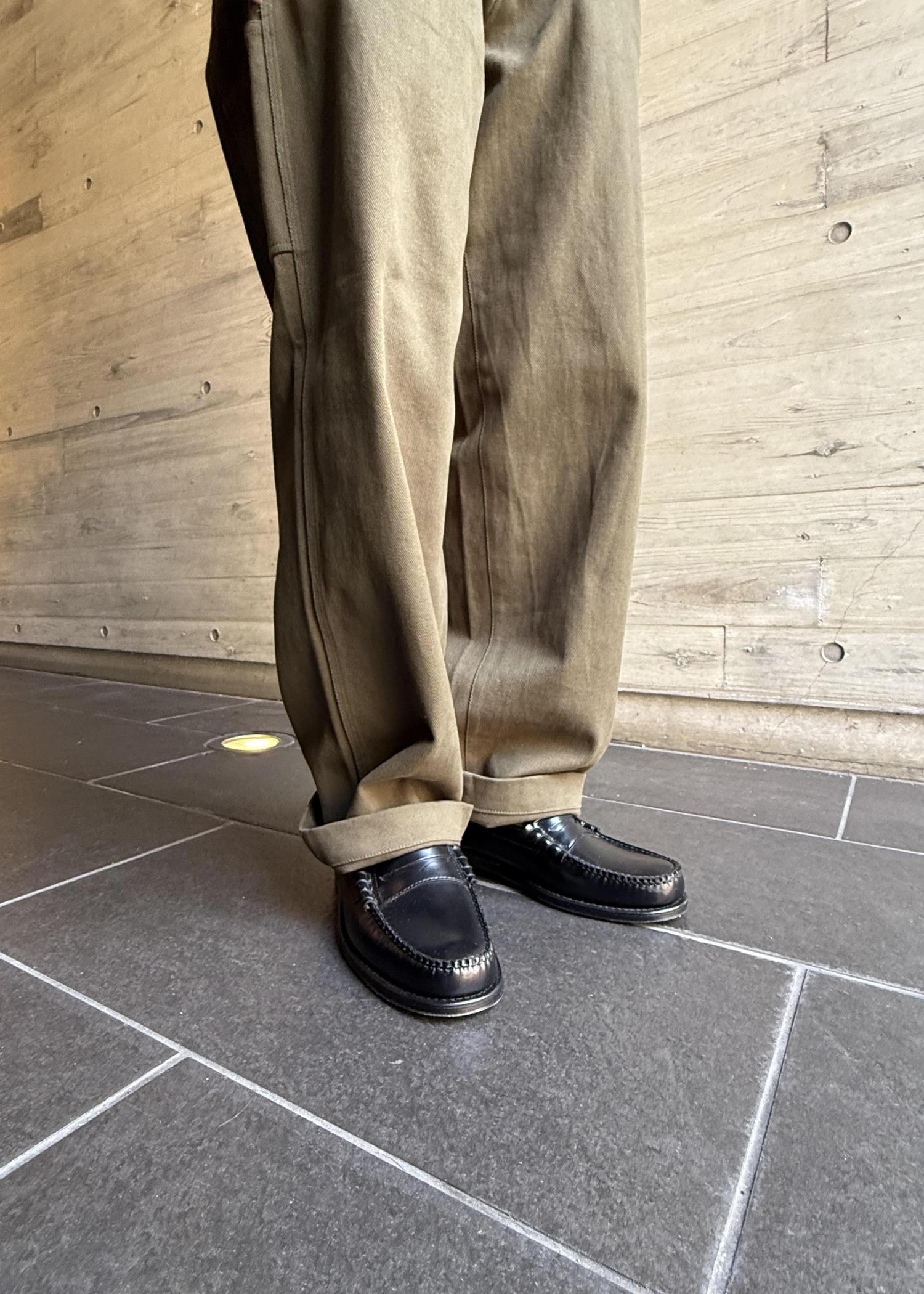 パンツはワイドストレートのペインターパンツは腰からまっすぐ落ちた綺麗なシルエットでリラックスしたサイズ感ではあるものの落ち着いたカラーとミニマルなデザインが大人のアイテムになっています。
