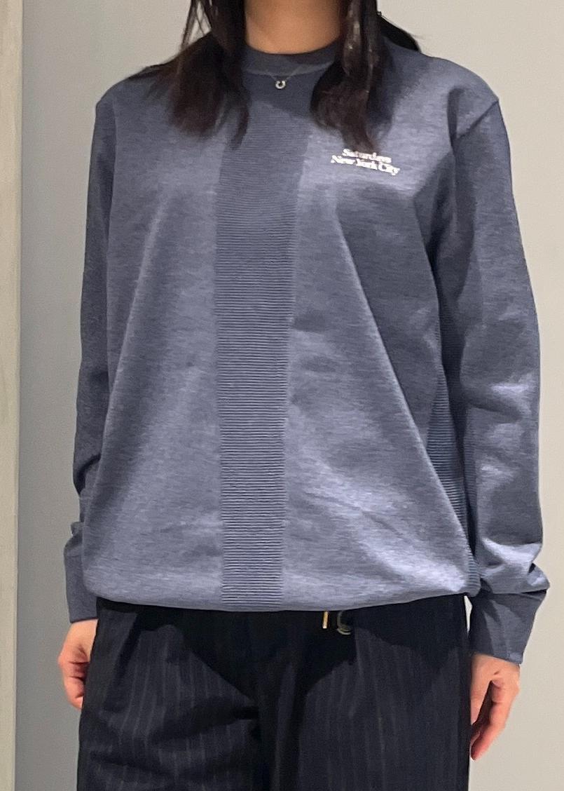 NEW!Saturdays NYCCrewneck Light Sweaterグレー / S¥25,300レビュー通気性と肌触りを考慮し、袖の内側や身頃の脇、中央、背中で編み地を部分的に変化させた、ニットセーターです。